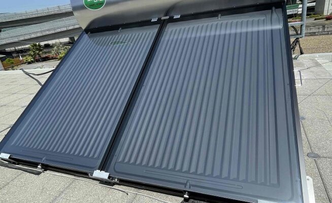 陸屋根防水工事、本日最終日!太陽熱温水器取り付け(香川県高松市檀紙町)