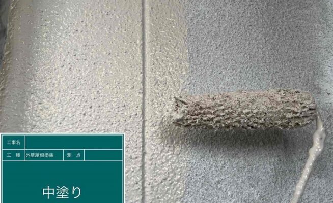 屋根・外壁塗装工事の外壁の中塗り作業を行いました(香川県高松市一宮町)