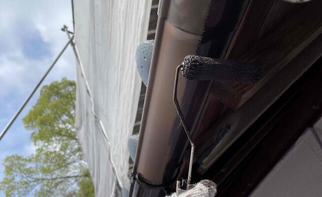 屋根・外壁塗装工事現場の雨樋塗装を行いました(香川県さぬき市昭和)