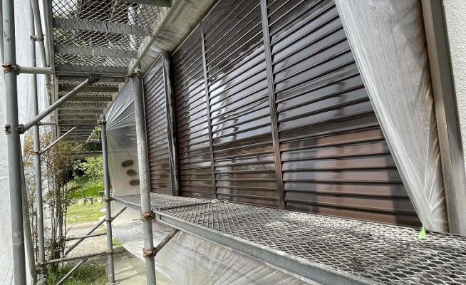 屋根・外壁塗装工事現場の最終日!雨戸・戸袋吹付け塗装(香川県さぬき市昭和)