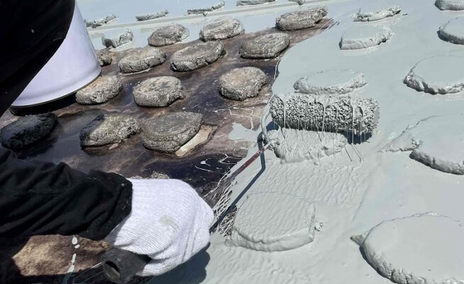 陸屋根ウレタン防水工事の下塗り作業とウレタン防水作業を行いました(香川県高松市檀紙町)