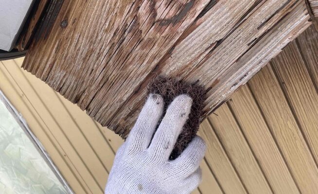 香川県高松市香川町にて本日外壁塗装工事7日目、木部ケレン+トタン錆止め