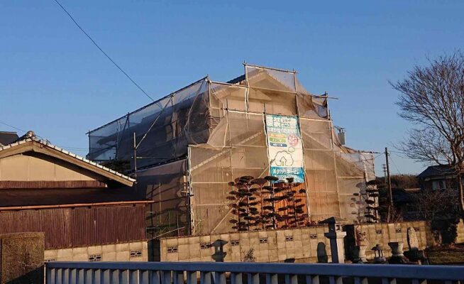 香川県木田郡三木町にて、本日外壁塗装工事の足場を設置致しました!