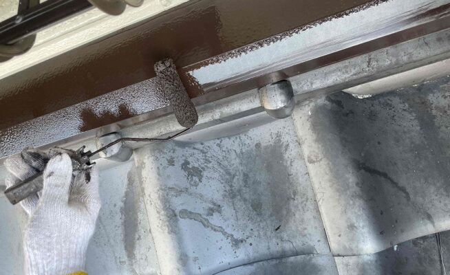 水切り板金の塗装を行いました。本日工事9日目(香川県高松市香川町)