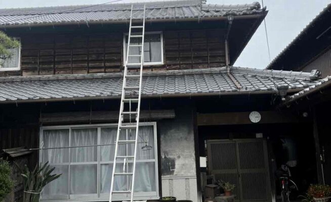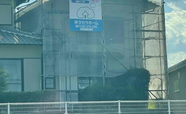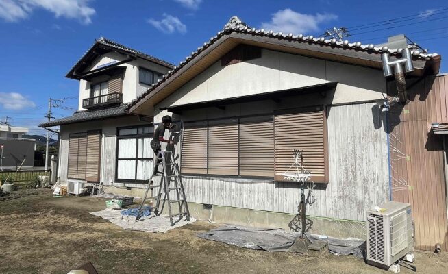 香川県木田郡三木町K様邸で足場設置+高圧洗浄