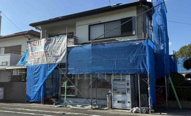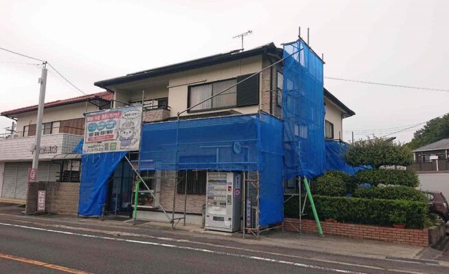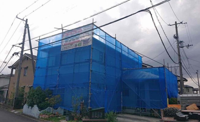 香川県木田郡三木町にて外壁塗装工事の仮設足場を設置いたしました!