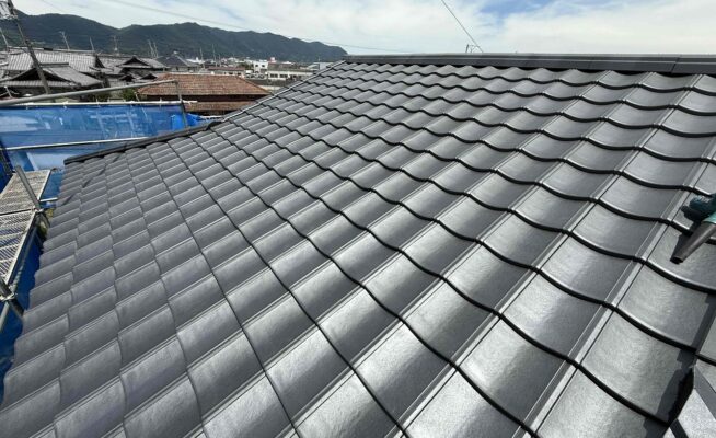 香川県某所にて瓦葺き替え工事(ケイミューROOGA雅)を行いました!