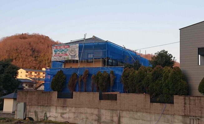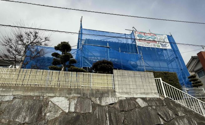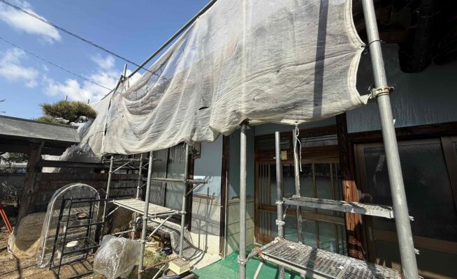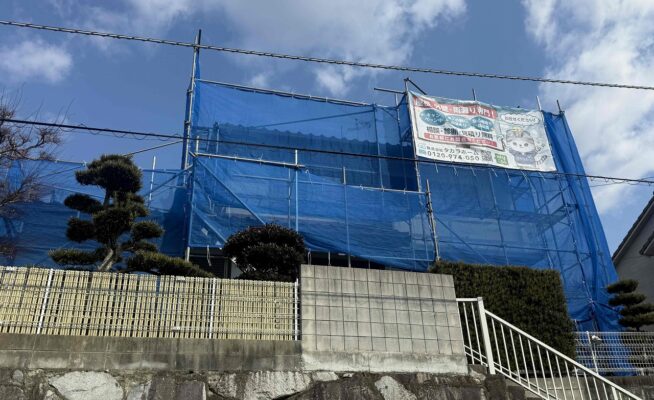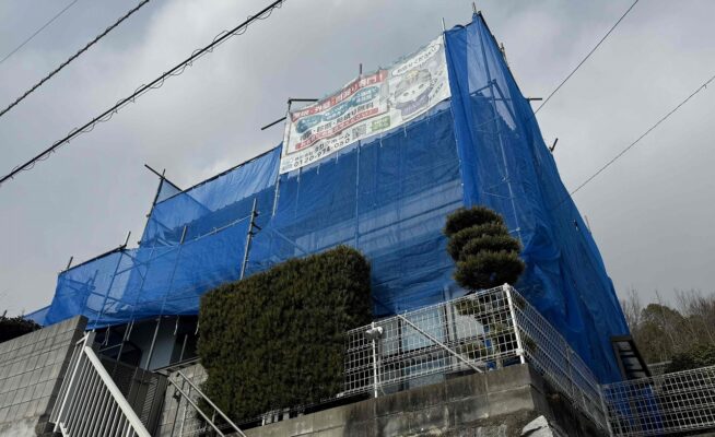 香川県高松市塩江町にて外壁塗装工事の仮設足場を設置いたしました!