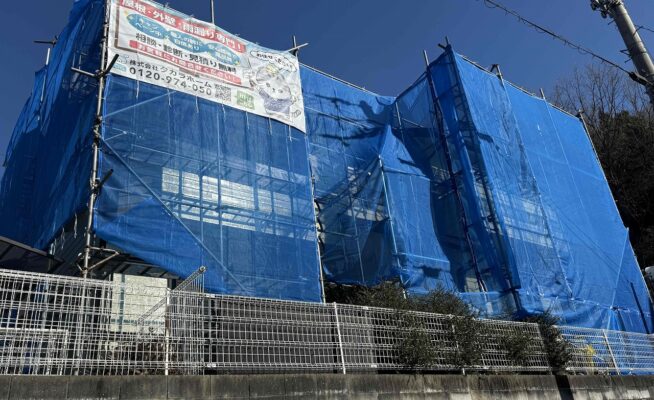 香川県高松市三谷町にて外壁塗装工事の養生作業を行いました!