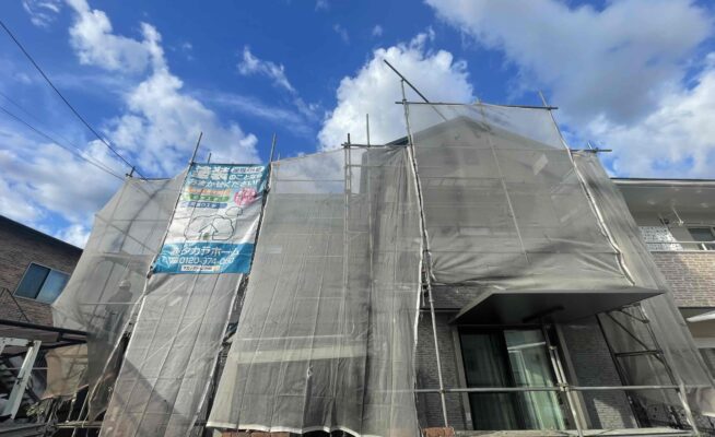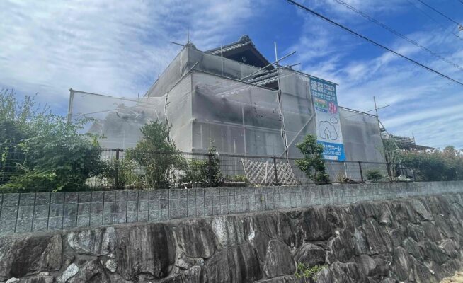 香川県高松市十川西町にて外壁塗装工事の足場を設置いたしました!