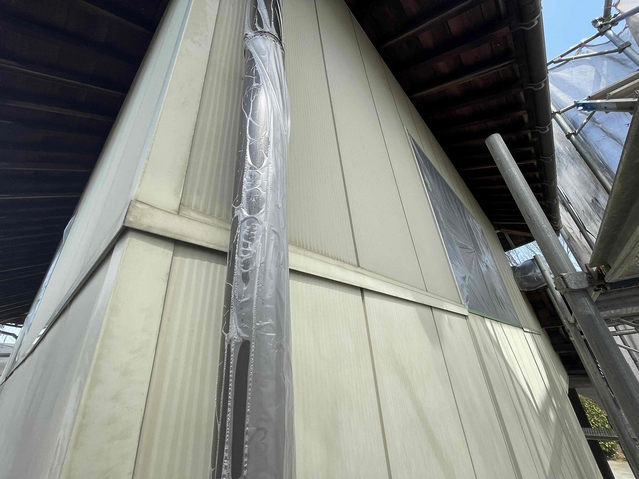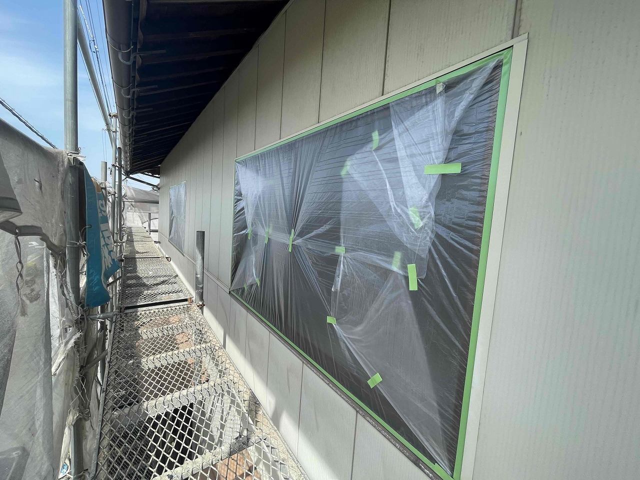 先日、高圧洗浄が完了しており、本日養生作業を行いました。明日より本格的に外壁塗装工事を行っていく予定となっております。引き続きよろしくお願いいたします。
