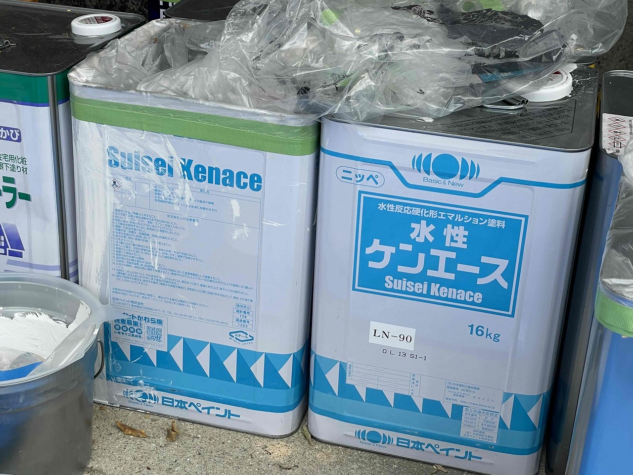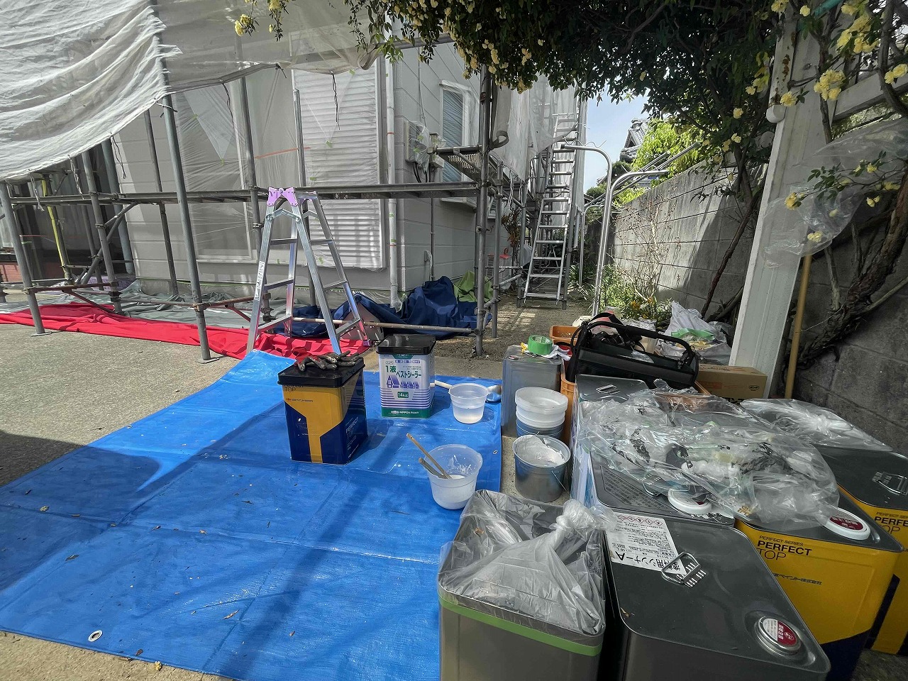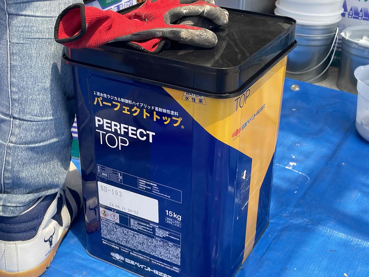 先日、外壁塗装の下塗り(1回目塗装)が完了し、本日、中塗り(2回目塗装)を行いました。後日、上塗り(3回目塗装)を行っていく予定となっております。