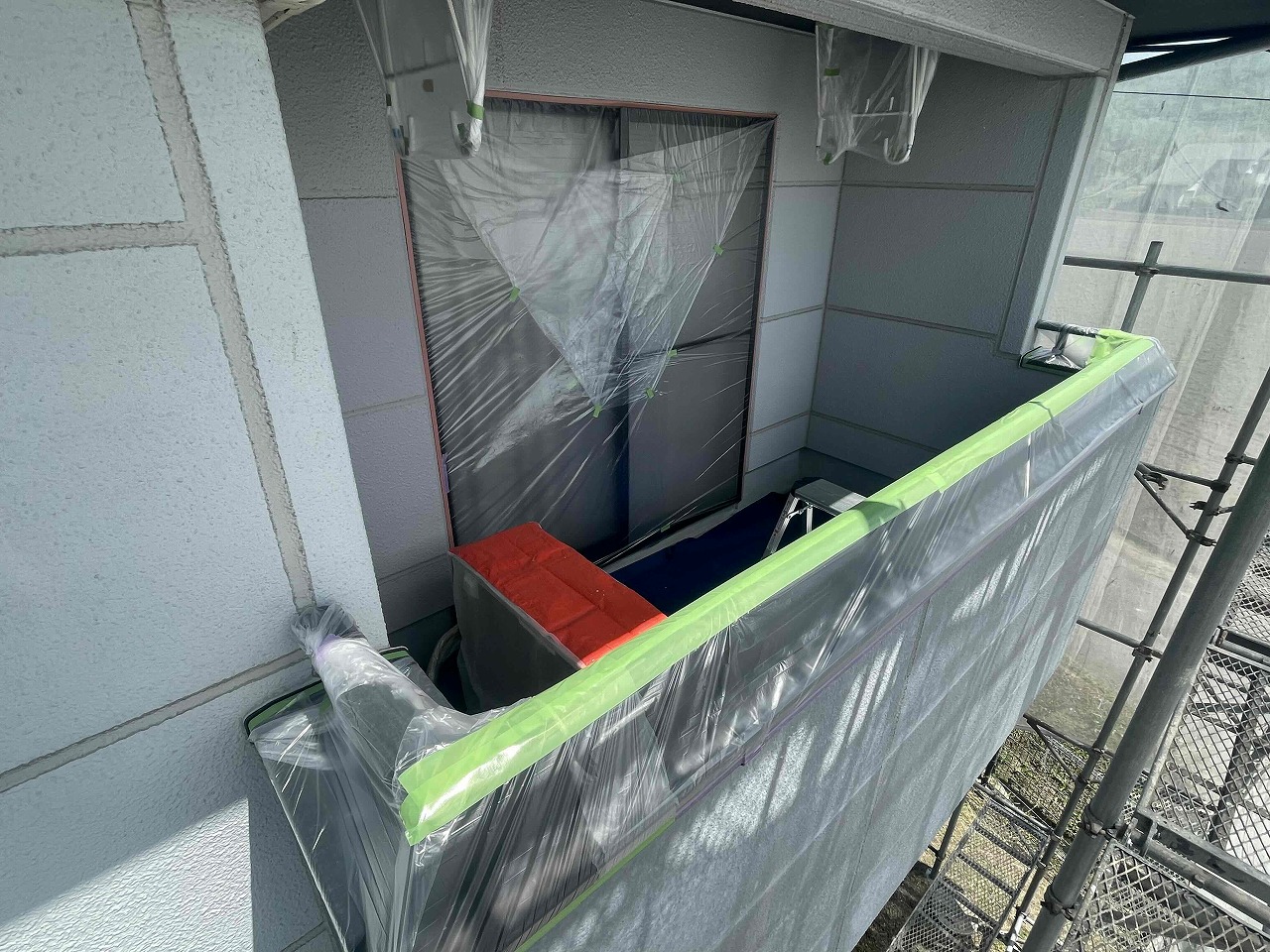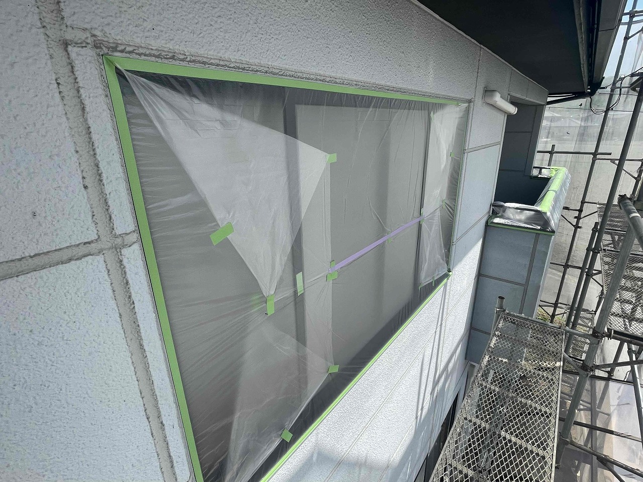 先日、高圧洗浄が完了しており、本日は養生作業を行いました。明日より塗装工事(日本ペイント)を行っていく予定となっております。引き続きよろしくお願いいたします!?