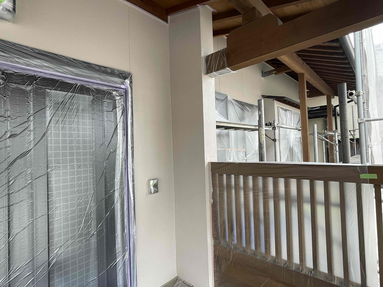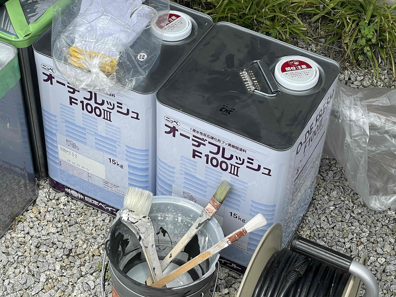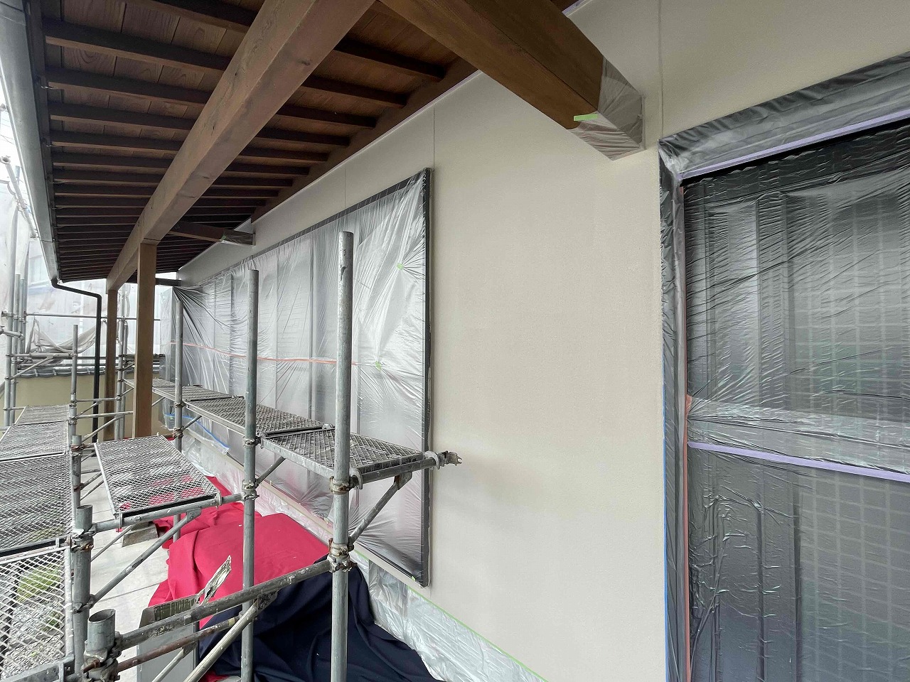 先日、下塗り(1回目塗装)が完了しており、本日は中塗り(2回目塗装)を行いました。明日、上塗り(3回目塗装)を行う前にローラーで塗れない細かい部分を専用のハケを使って塗装していく予定となっております。引き続きよろしくお願いいたします!?