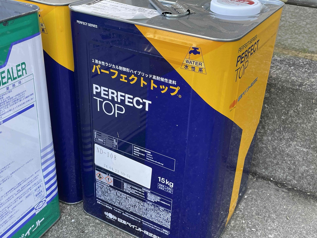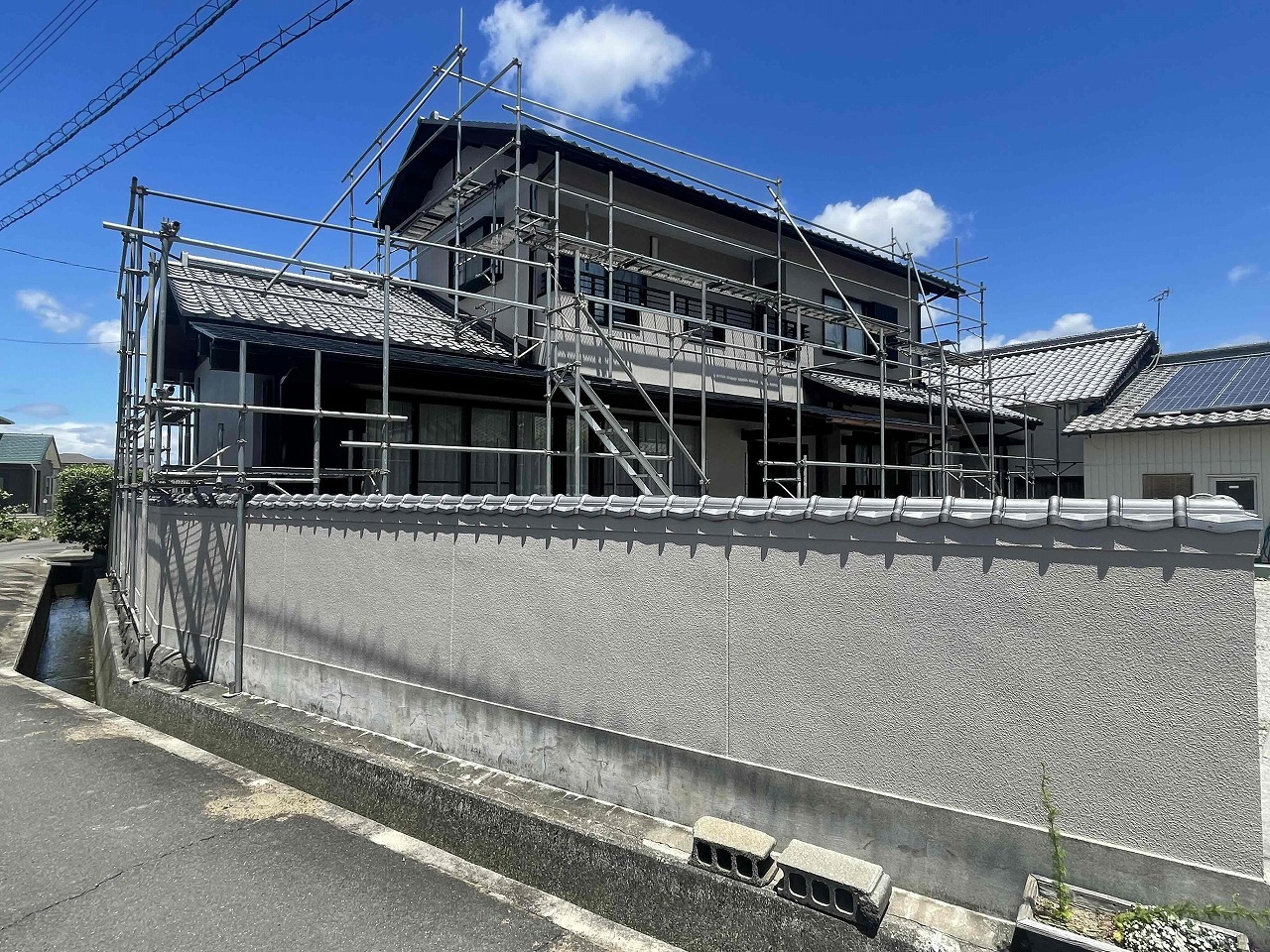 先日、母屋の塗装工事が完了しており、本日はおうちまわりの塀の塗装を行いました。