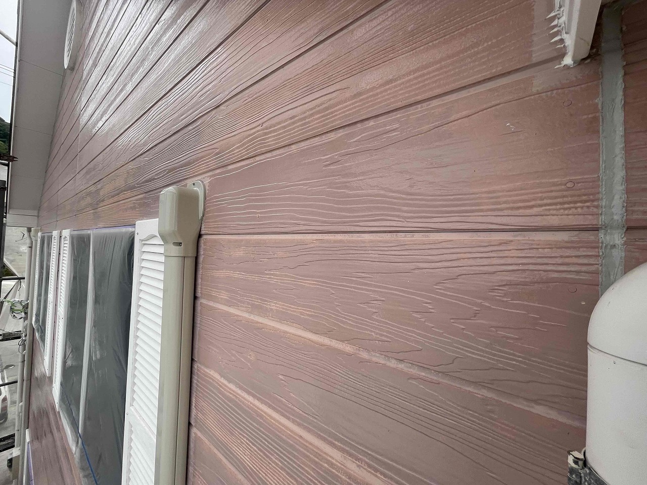 先日、目地コーキング工事が完了しており、本日は下塗り(1回目塗装)が完了いたしました。明日、写真に写っている白い木部の部分の塗装を行っていく予定となっております。引き続きよろしくお願いいたします!?