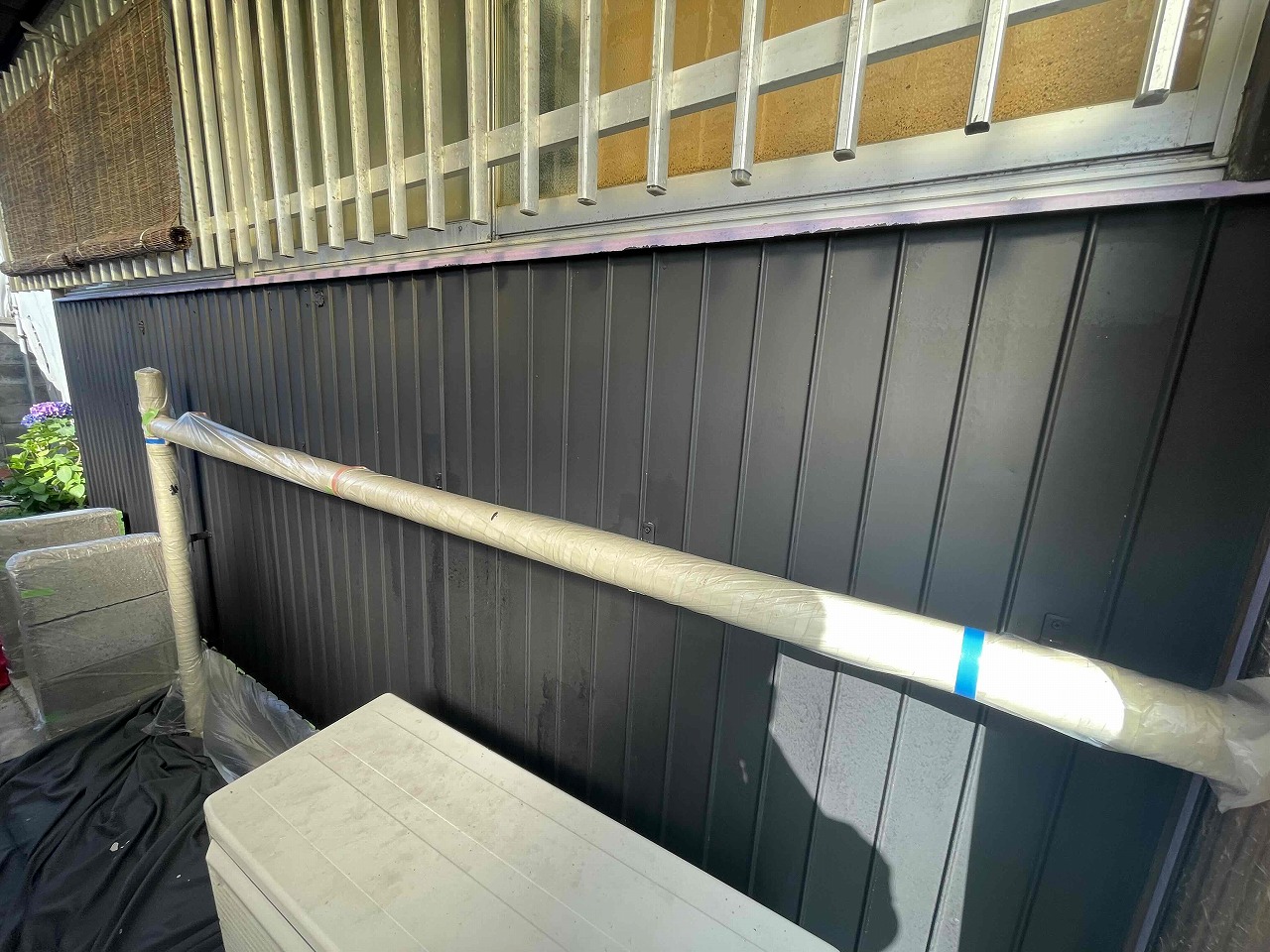 先日、養生作業が完了しており、本日は錆止め塗装(1回目塗装)を行いました。明日は中塗り(2回目塗装)を行っていく予定となっております。引き続きよろしくお願いいたします!?