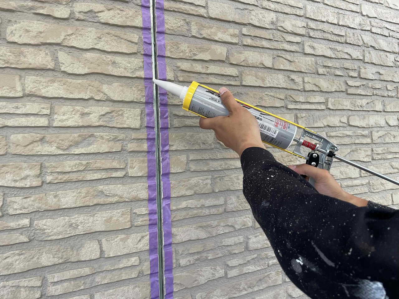 先日、経年劣化した既存のコーキングの撤去を行い、本日は目地コーキング工事(変成シーリング)を行いました。雨漏りが多い窓枠周りもしっかりと行いました。変成シーリングでコーキングを行うことにより、次回外壁塗装を行う際に塗膜が付着しやすくなります。明日も引き続きよろしくお願いいたします!?