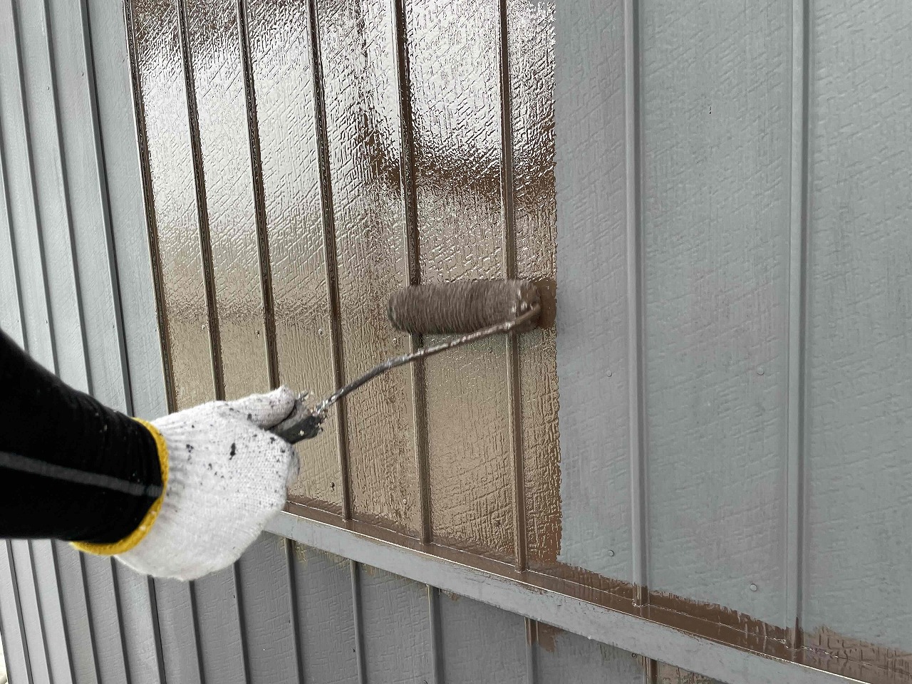 先日、外壁塗装の下塗り(1回目塗装)が完了しており、本日は中塗り(2回目塗装)を行いました。こちらの現場は日本ペイントファインフッ素UV(フッ素)での工事となります。明日は上塗り(3回目塗装)を行っていく予定となっております。引き続きよろしくお願いいたします!?