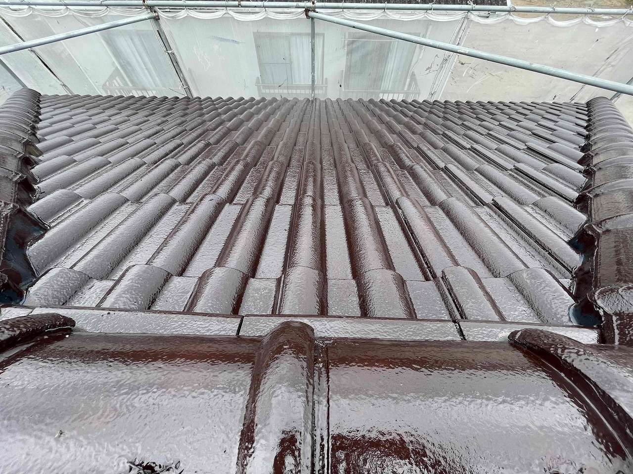 先日、屋根塗装の1回目塗装が完了しており、本日は2回目塗装を行いました。明日は3回目塗装(タフグロスコート)を行っていく予定となっております。引き続きよろしくお願いいたします!?