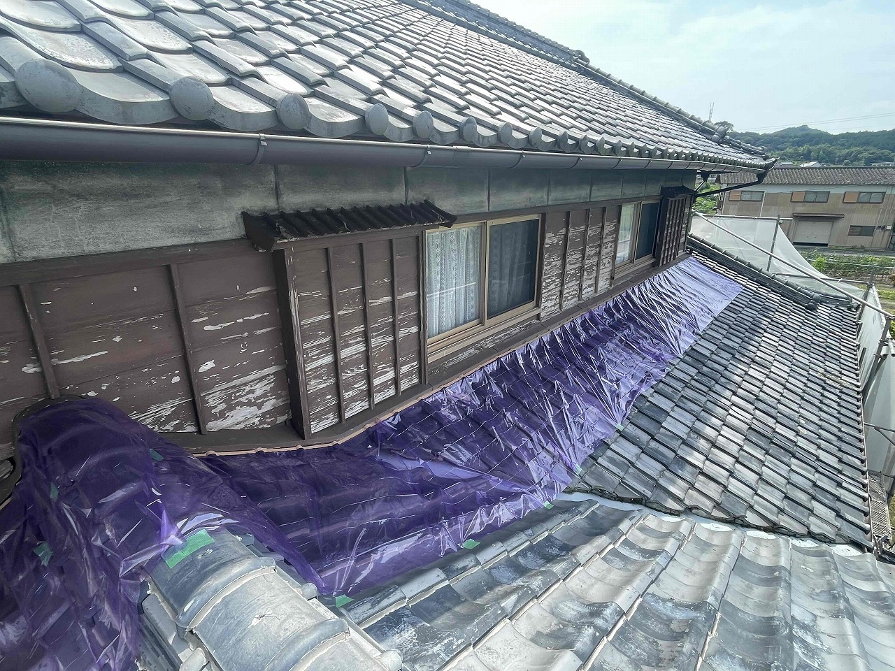先日、高圧洗浄が完了しており、本日養生作業と木部のケレン作業を行いました。明日より、外壁塗装工事を行っていく予定となっております。引き続きよろしくお願いいたします!?