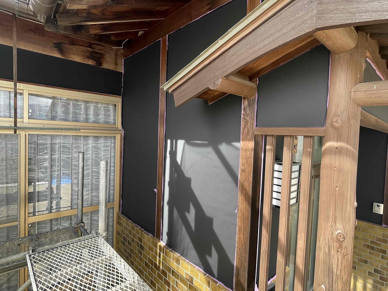 先日に引き続いて本日は外壁塗装の上塗りを行いました。明日は、木部の塗装を行ってまいります。引き続きよろしくお願いいたします!?