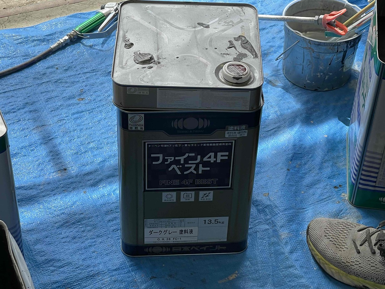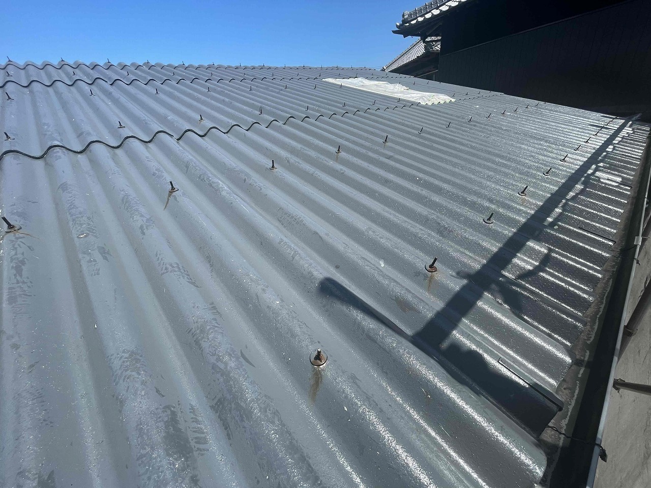 先日、スレート屋根・外壁の高圧洗浄が完了しており、本日は屋根塗装の下塗り(1回目塗装)を行いました。今回、中塗り・上塗りに使用する塗料はフッ素となります。引き続きよろしくお願いいたします!?