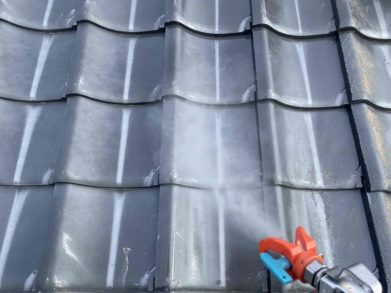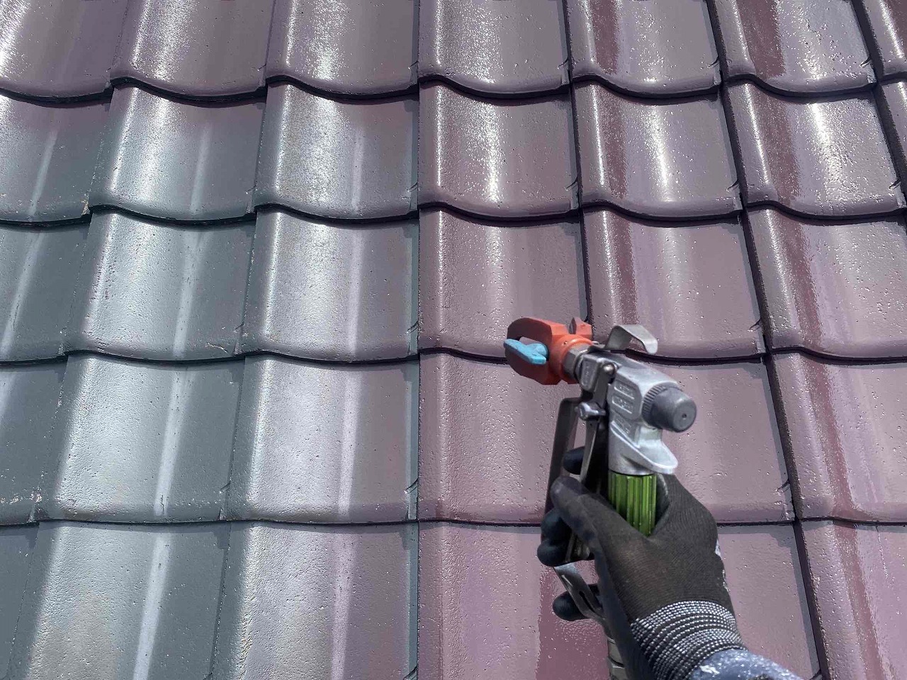 先日、屋根塗装の下塗り(1回目塗装)が完了しており、本日は中塗り(2回目塗装)を行いました。明日は上塗り(3回目塗装)を行っていく予定となっております。引き続きよろしくお願いいたします!?