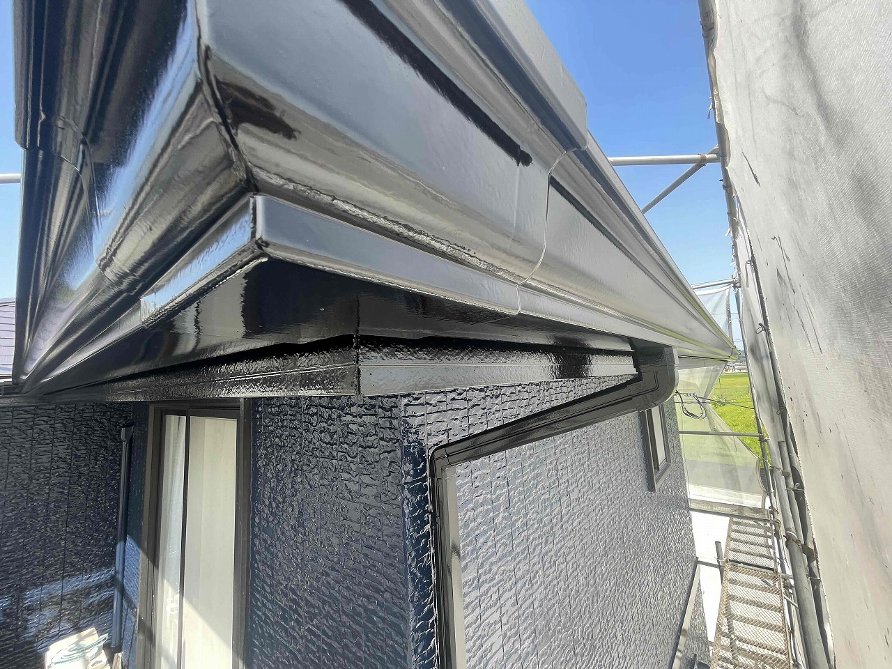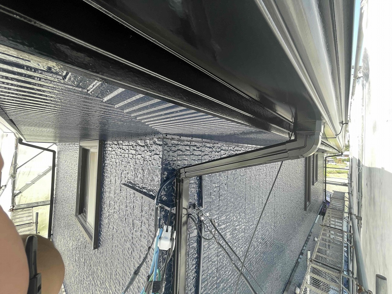 先日、屋根・外壁の塗装が完了しており、本日は雨樋など付帯パーツ類の塗装と最終チェックを行い、全ての塗装工事が完了いたしました。