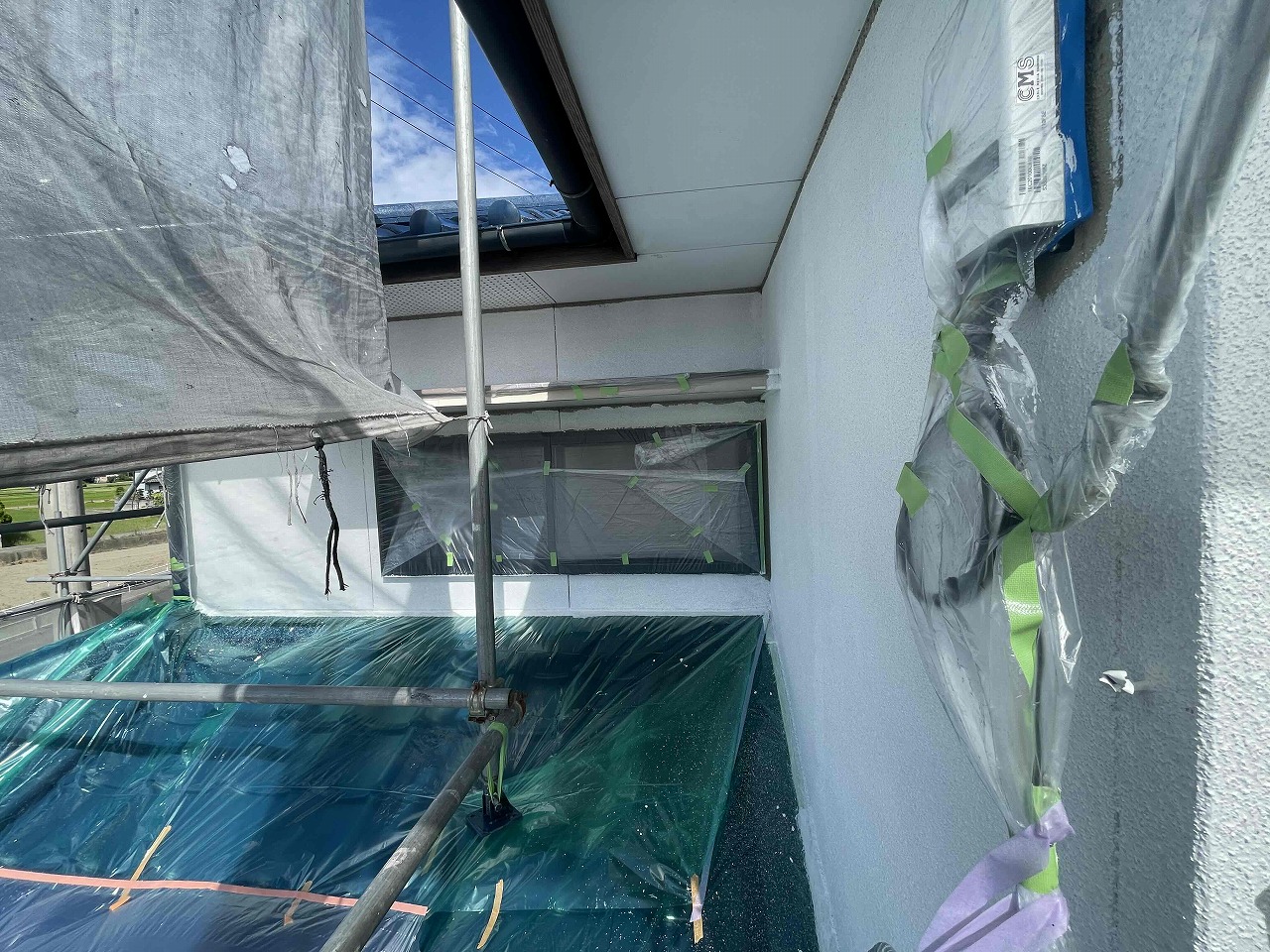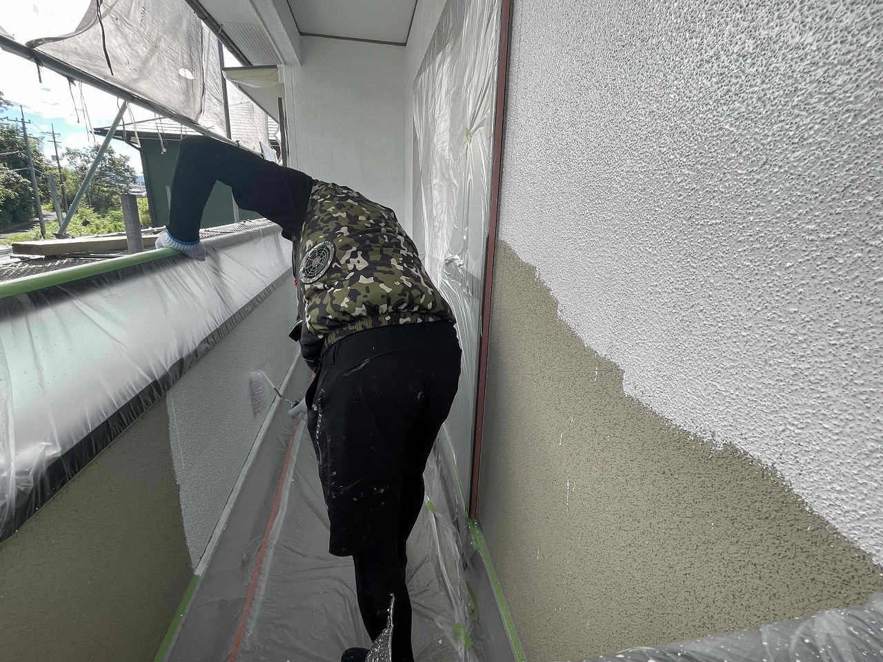 先日、屋根塗装が完了しており、本日は外壁塗装の下塗り(1回目塗装)を行いました。明日は軒天塗装工事を行っていく予定となっております。引き続きよろしくお願いいたします!?