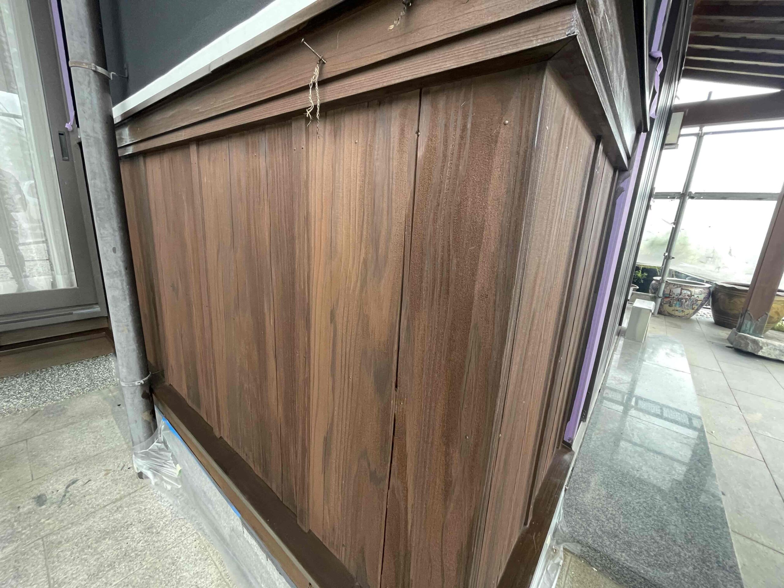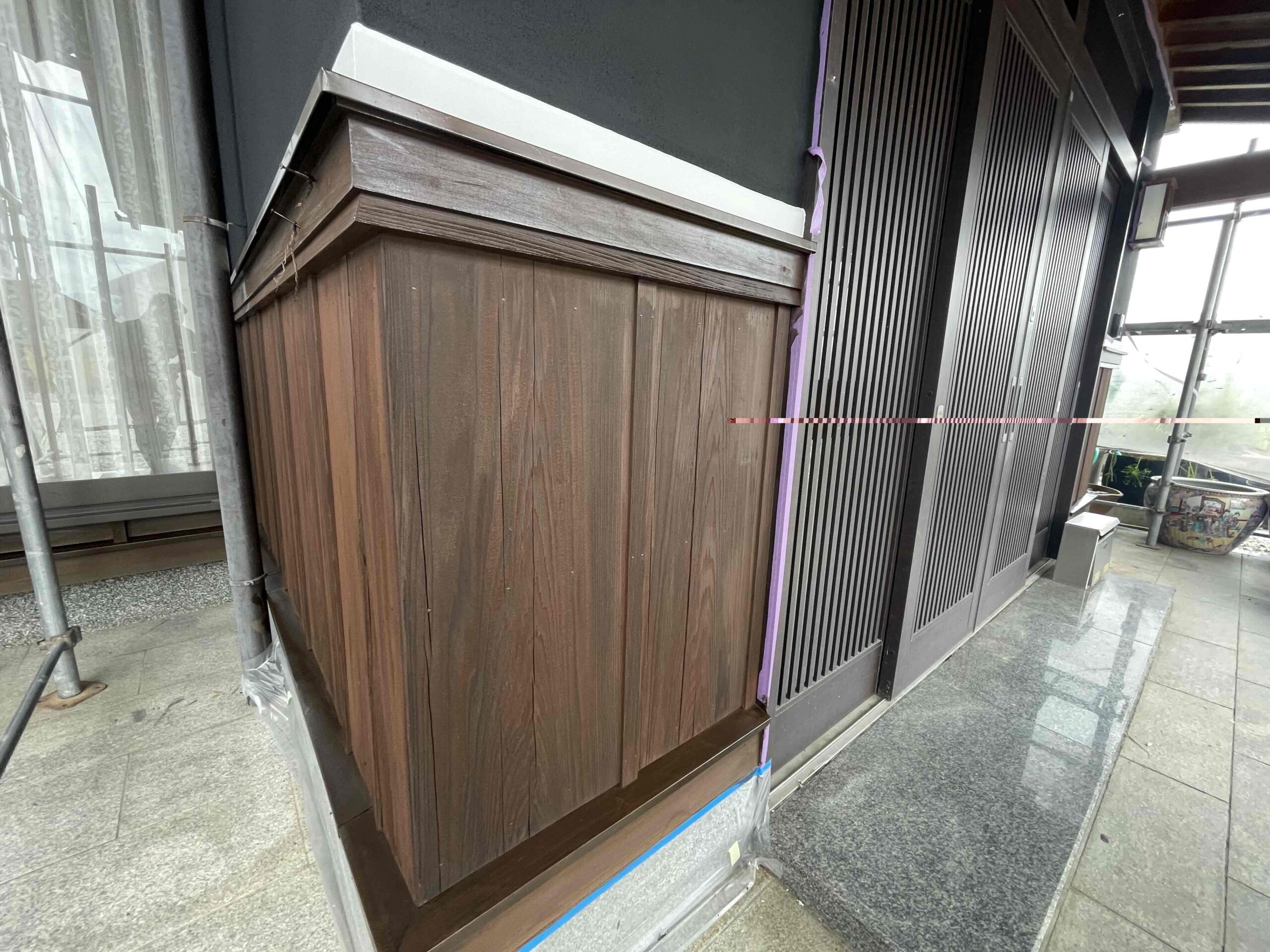 先日に引き続き、木部防腐剤塗装(キシラデコール)(2回目塗装)を行いました。明日は雨樋などの付帯部塗装を行っていく予定となっております。引き続きよろしくお願いいたします!?