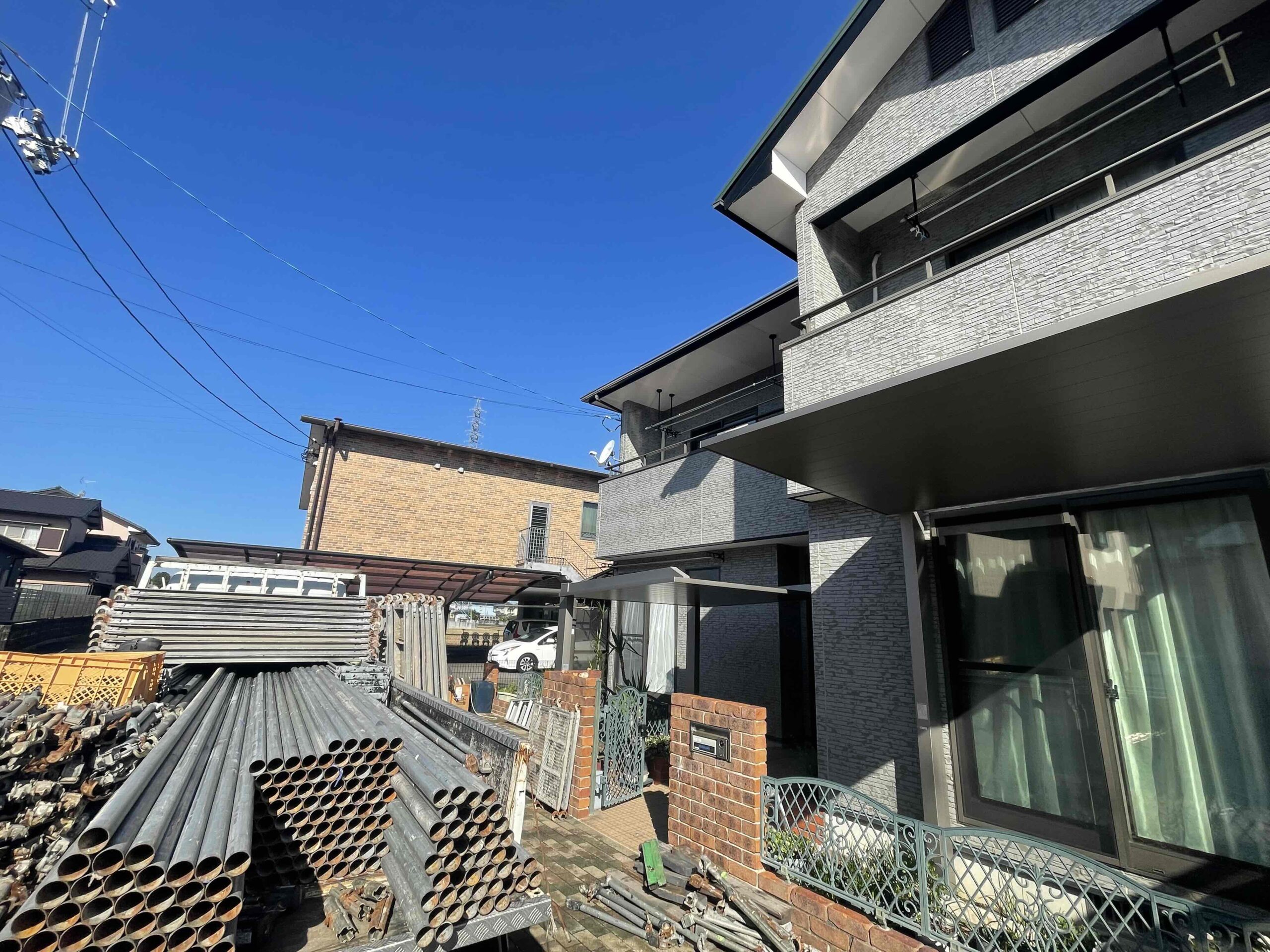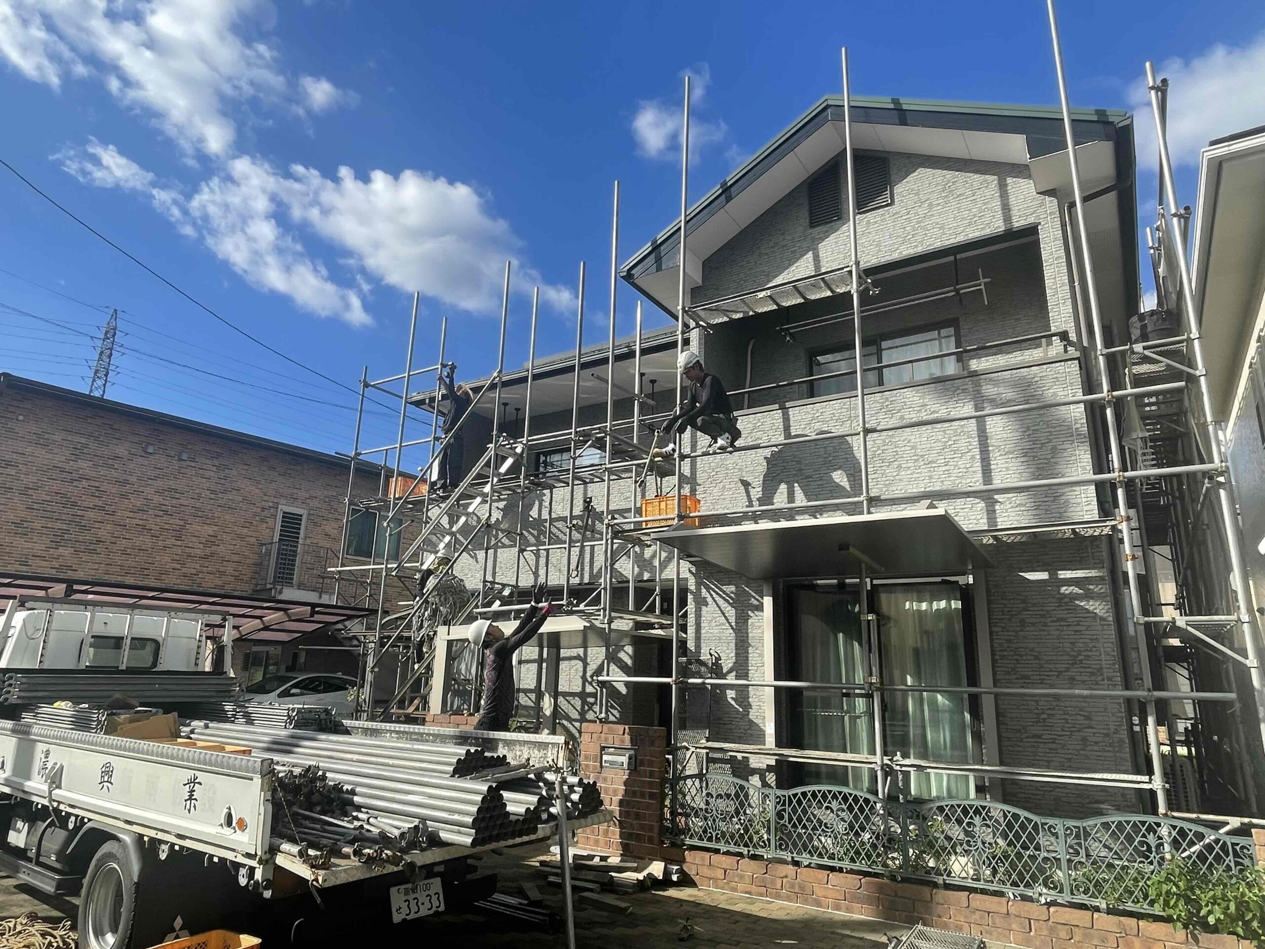 香川県高松市十川西町にて外壁塗装工事の足場を設置いたしました!