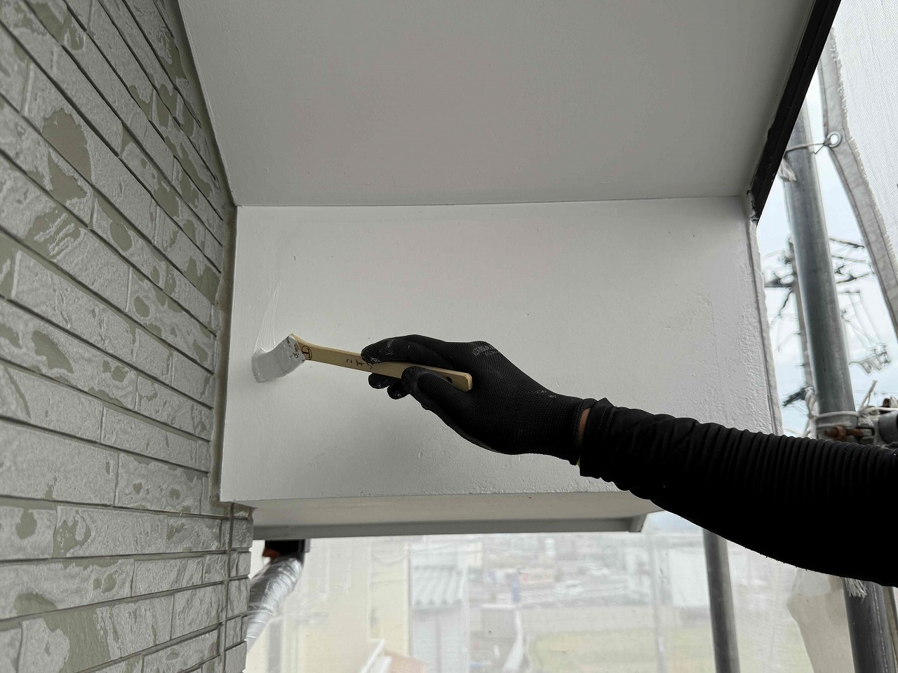 午前中に養生作業を行い、午後よりローラーでは塗装できない部分の箇所を専用のハケを使って塗装していきました。明日も引き続きよろしくお願いいたします!