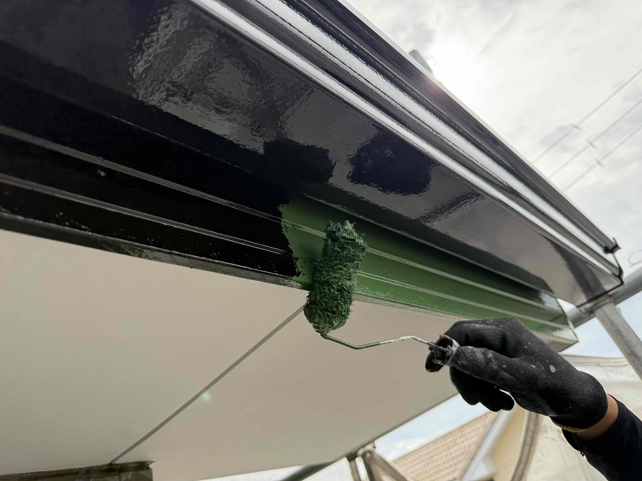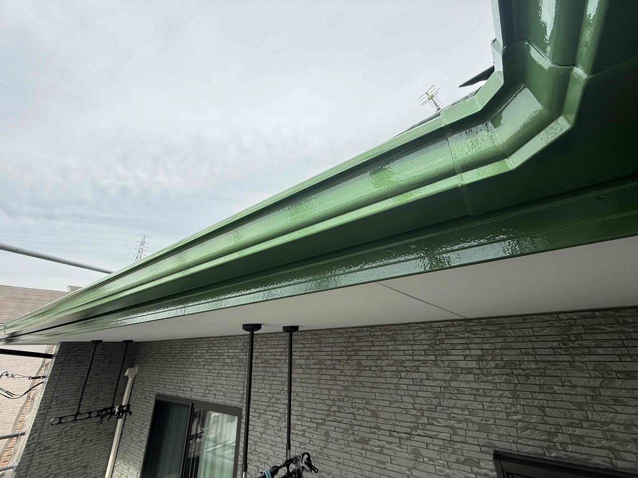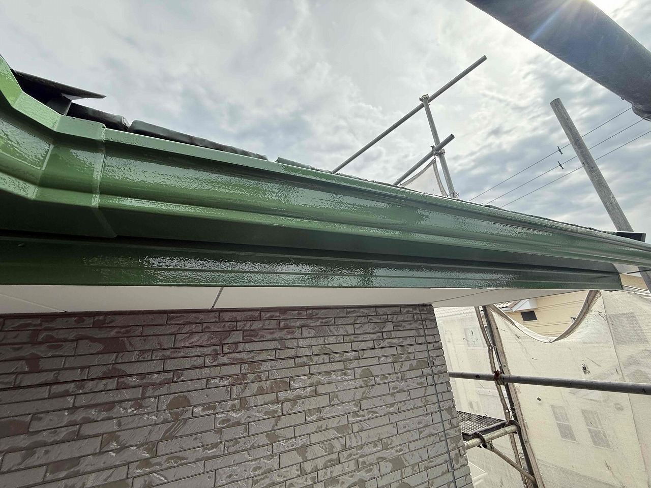 先日、外壁塗装の上塗りが完了しており、本日は雨樋など付帯パーツ類の塗装を行いました。明日も引き続きよろしくお願いいたします!?