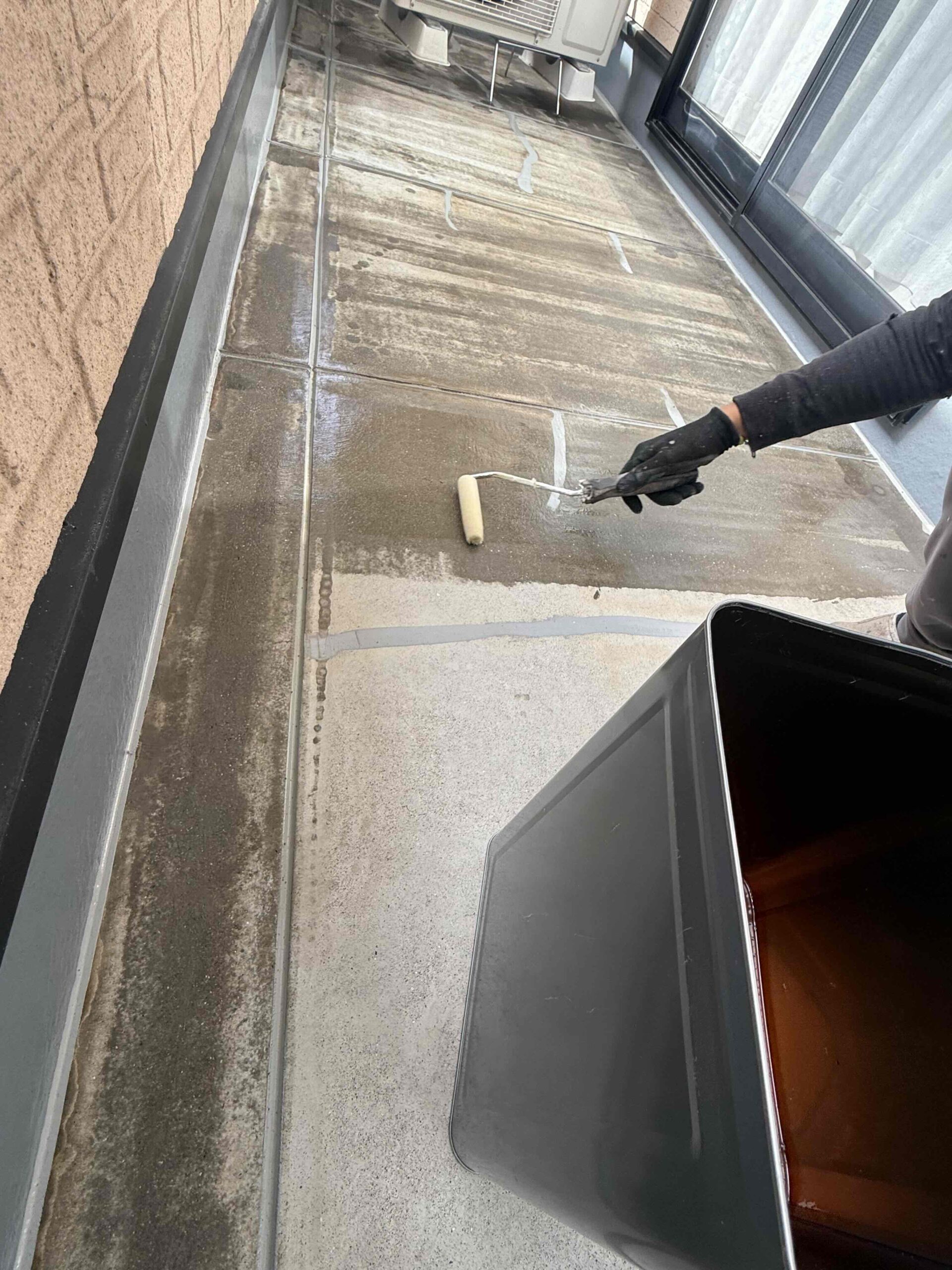 先日、コーキングを行い、本日は防水工事の下塗り(1回目塗装)を行いました。明日、ウレタン防水を行っていく予定となっております。引き続きよろしくお願いいたします!?