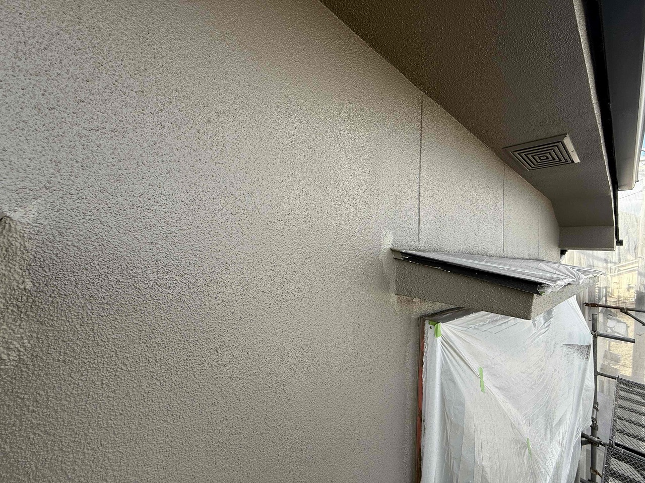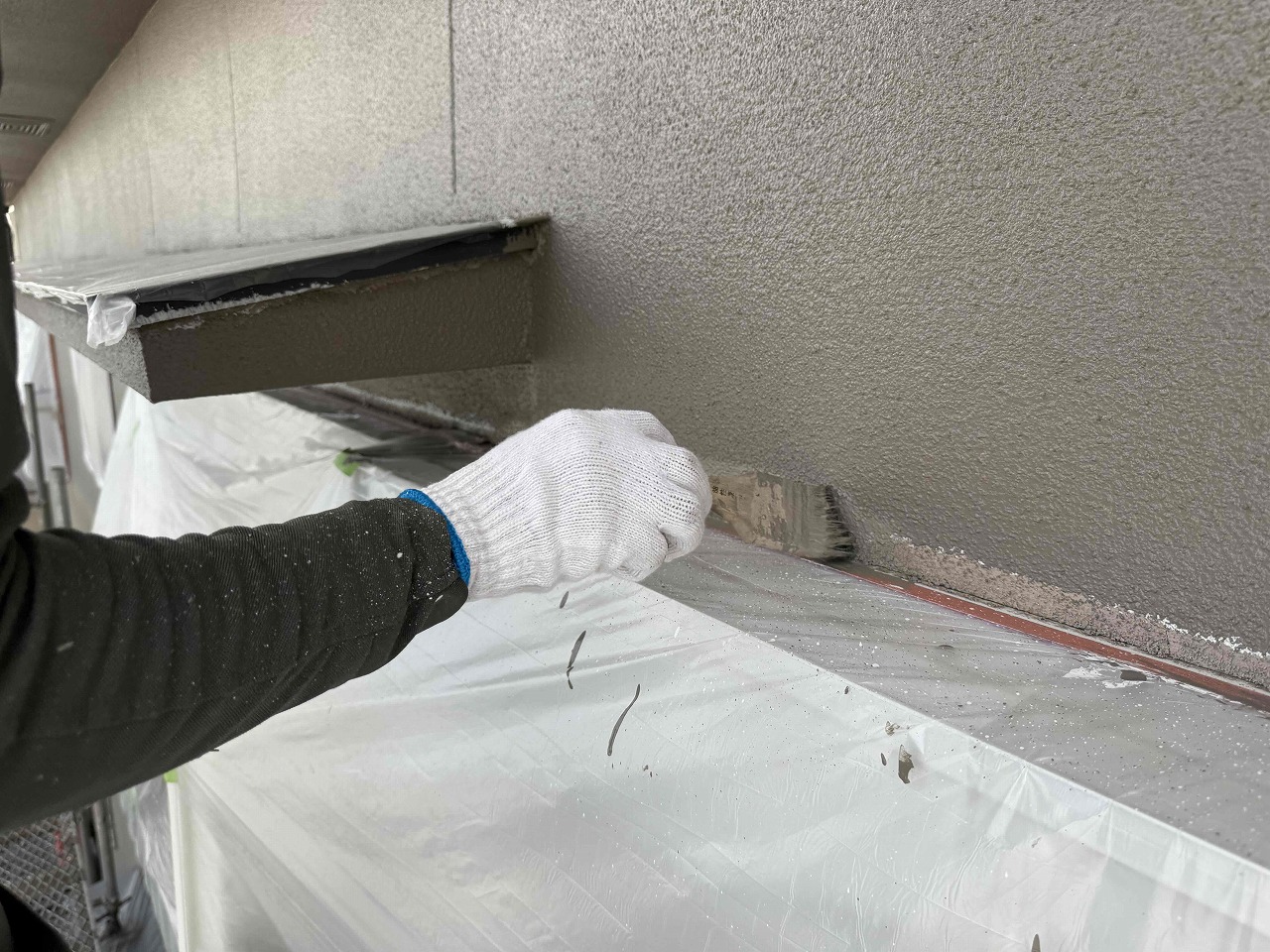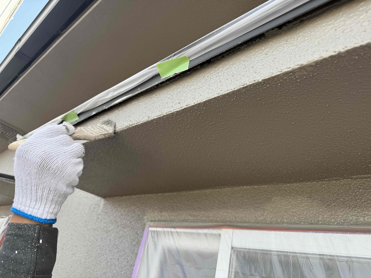 先日、中塗り(2回目塗装)が完了しており、本日はローラーで塗装できない部分を専用のハケを使って丁寧に塗装していきました。午後より上塗り(3回目塗装)を行いました。