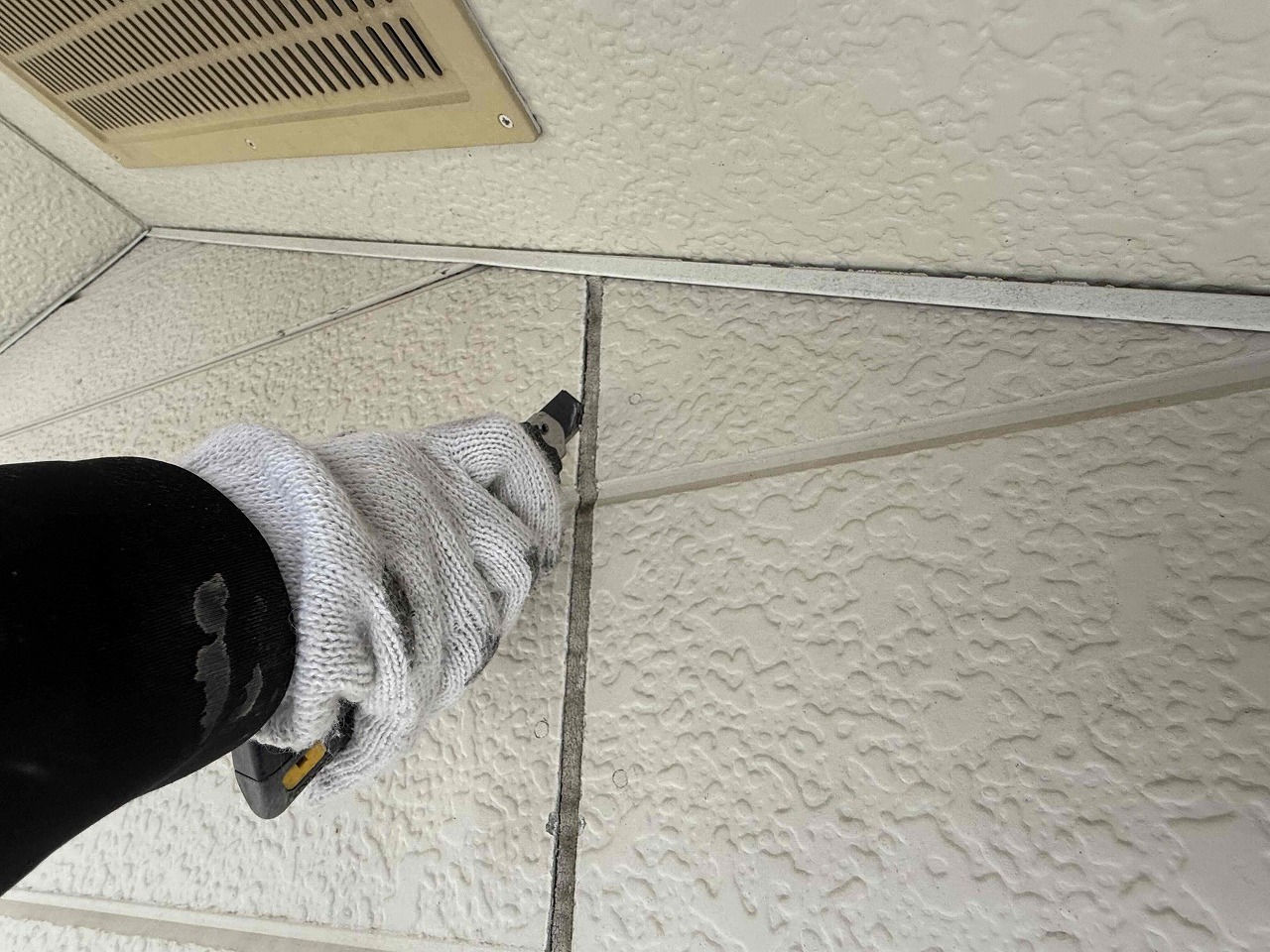 先日、高圧洗浄が完了しており、本日は古くなった既存のコーキングの撤去を行いました。明日は、養生とコーキングの新設を行っていく予定となっております。引き続きよろしくお願いいたします!?