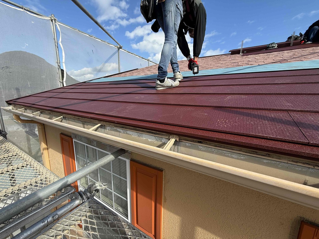 こちらのお家は現在、既存の瓦から雨水が浸入する状態となっているため、今回屋根カバー工法を施工することとなりました。明日も引き続きよろしくお願いいたします!?