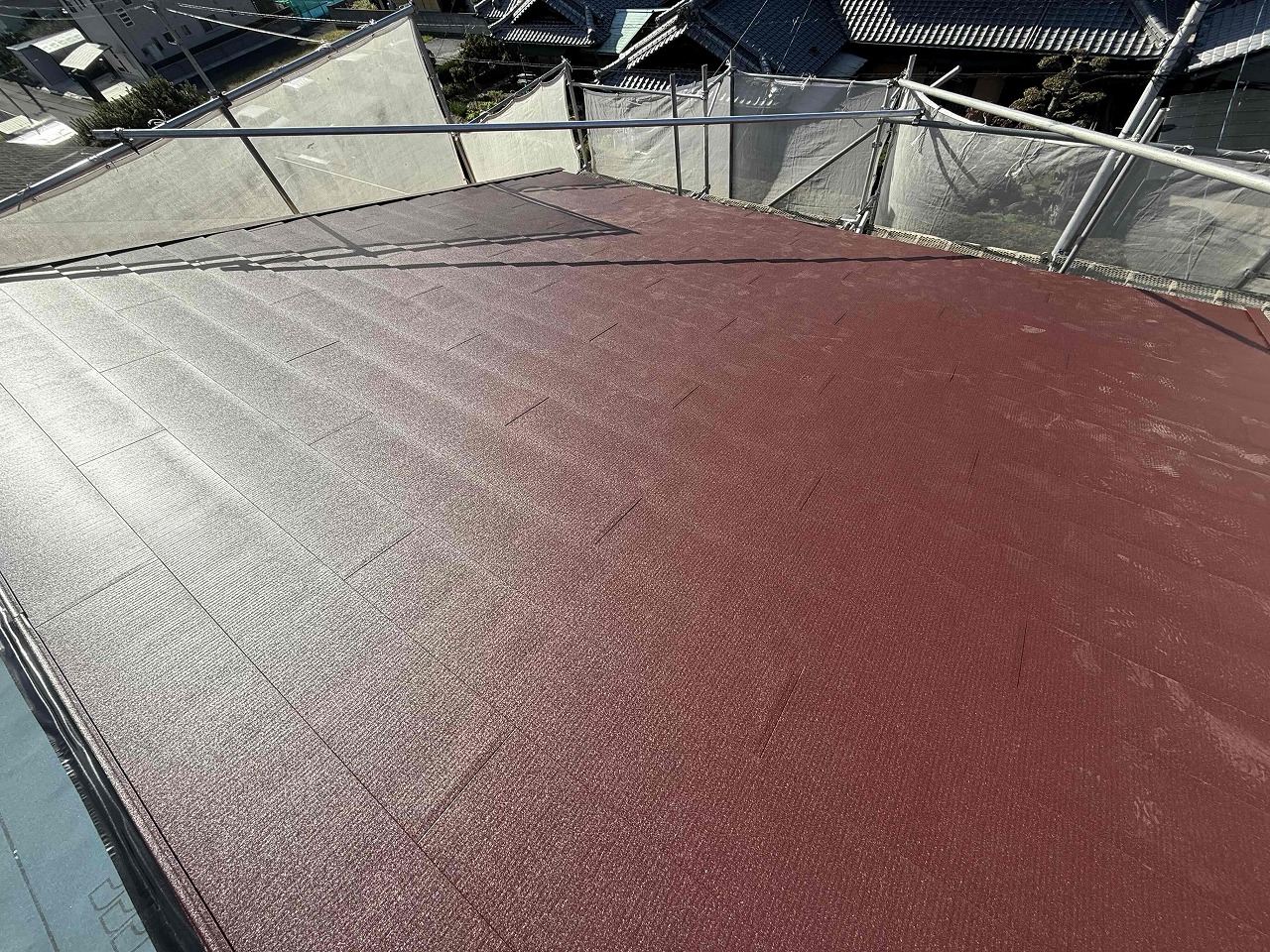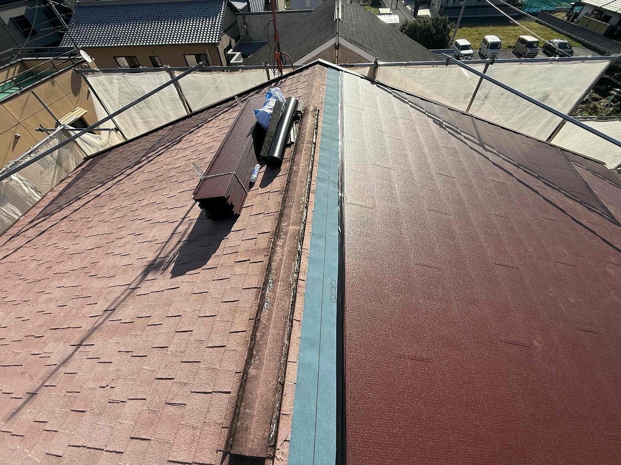先日に引き続き2階部分のカバー工法を行いました。写真に見える青いものはルーフィング加工(防水シート)となっており、既存の屋根の上に防水シート+屋根材を施工する工事となっております。明日は1階部分の工事を行っていく予定となっております。引き続きよろしくお願いいたします!?