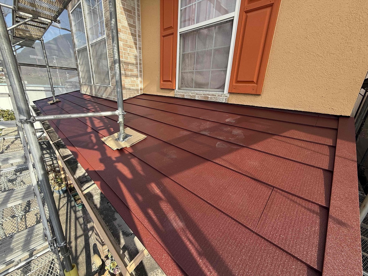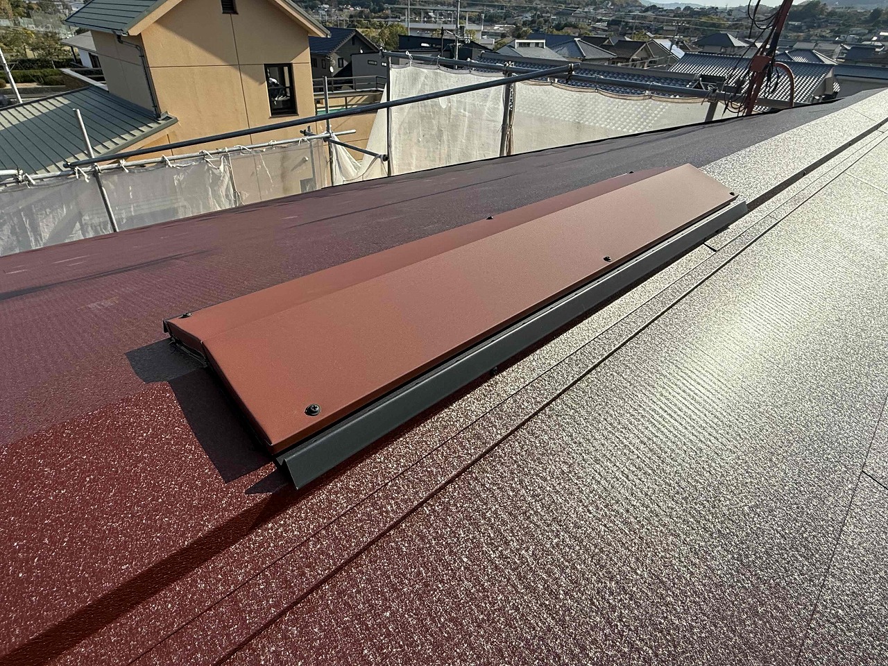 先日より行っていた屋根カバー工法が本日完工いたしました。御家族の方もご紹介くださり、工事契約となりました!ご紹介ありがとうございました。精一杯頑張らせていただきます!?後日、足場を解体し、工事が完了予定となっています。