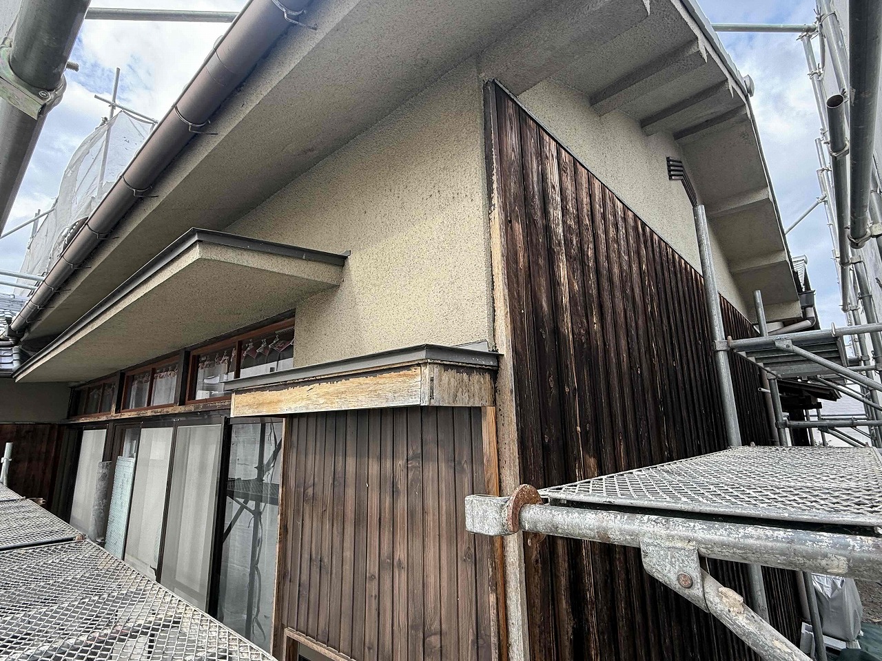 先日、足場の設置が完了しており、本日既存の塗膜や汚れなどを撤去する高圧洗浄を行いました。明日は養生作業を行っていく予定となっております。引き続きよろしくお願いいたします!?