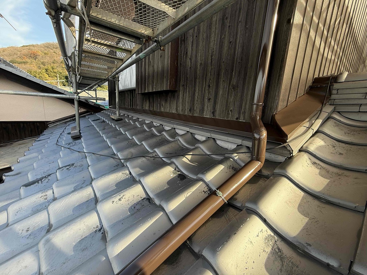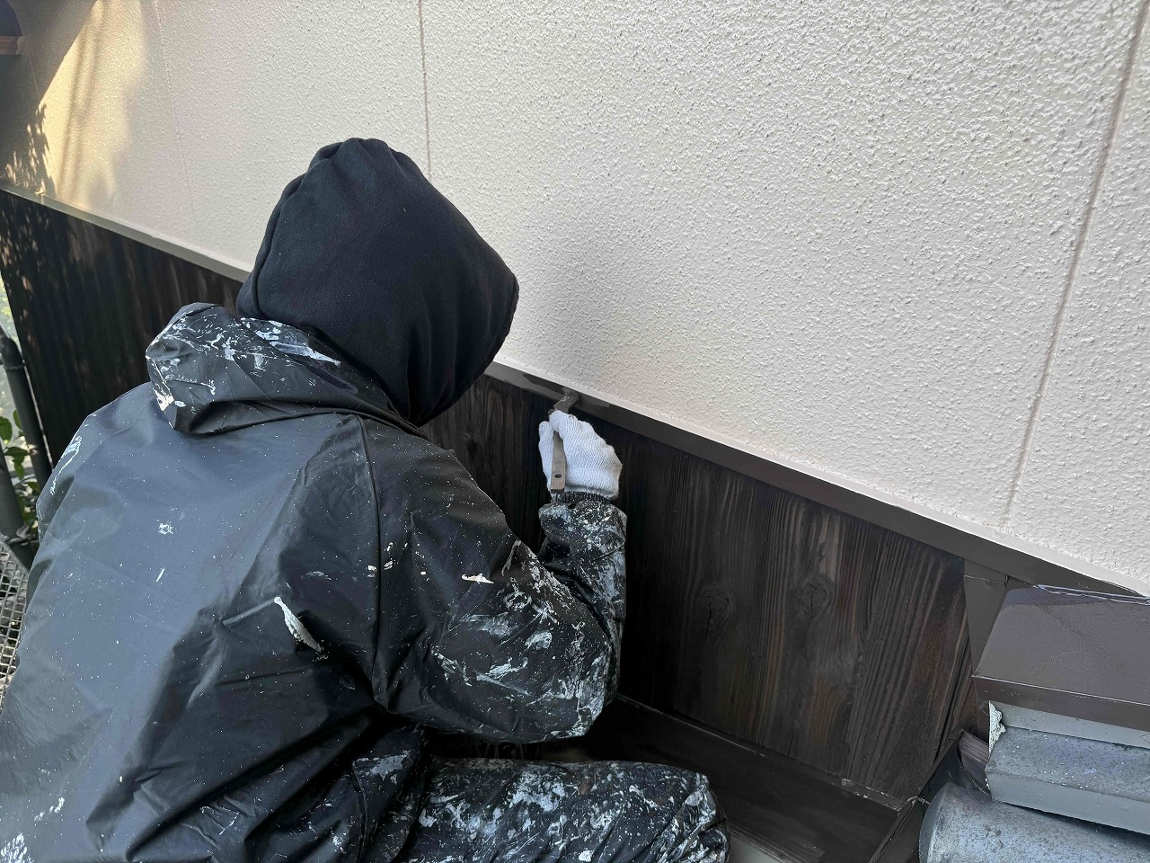 先日、木部塗装(キシラデコール)が完了しており、本日雨樋や水切りの付帯パーツ類の塗装を行いました。専用のハケやローラーを使い分け、丁寧に施工していきました。明日も引き続きよろしくお願いいたします!?