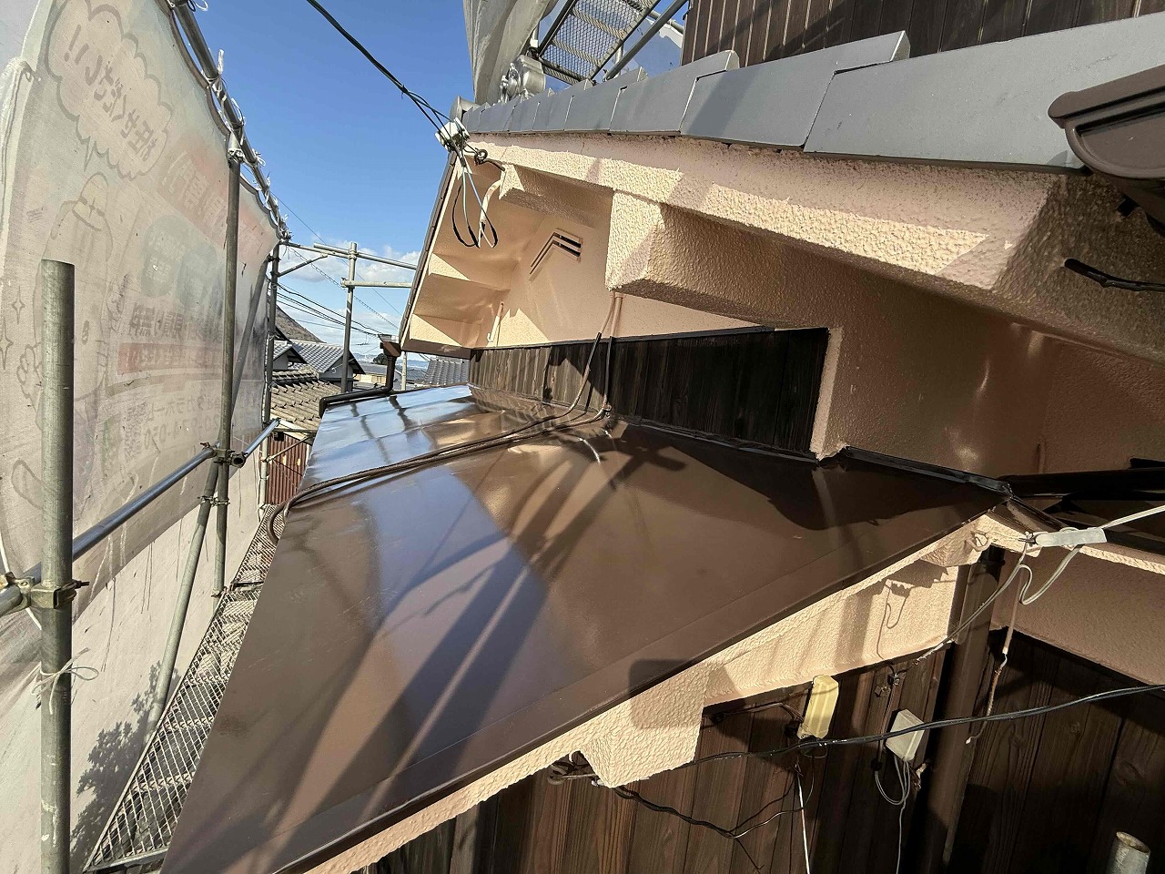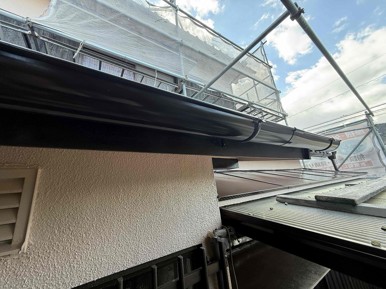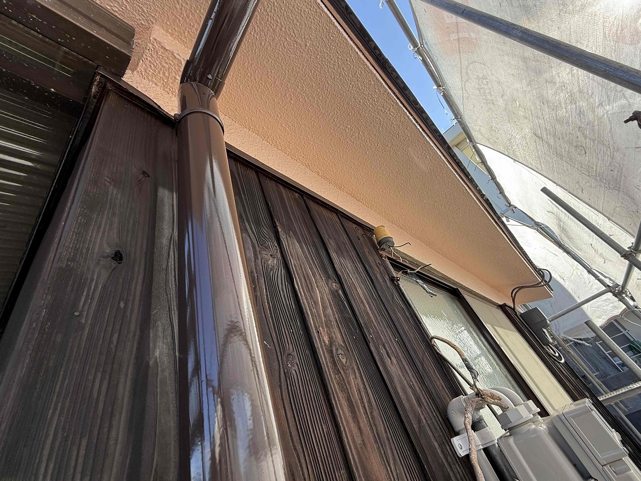 先日に引き続き、雨樋や戸袋まどの付帯パーツ類の塗装を行い、最終チェックと手直しを行い全ての塗装工事が完工いたしました。