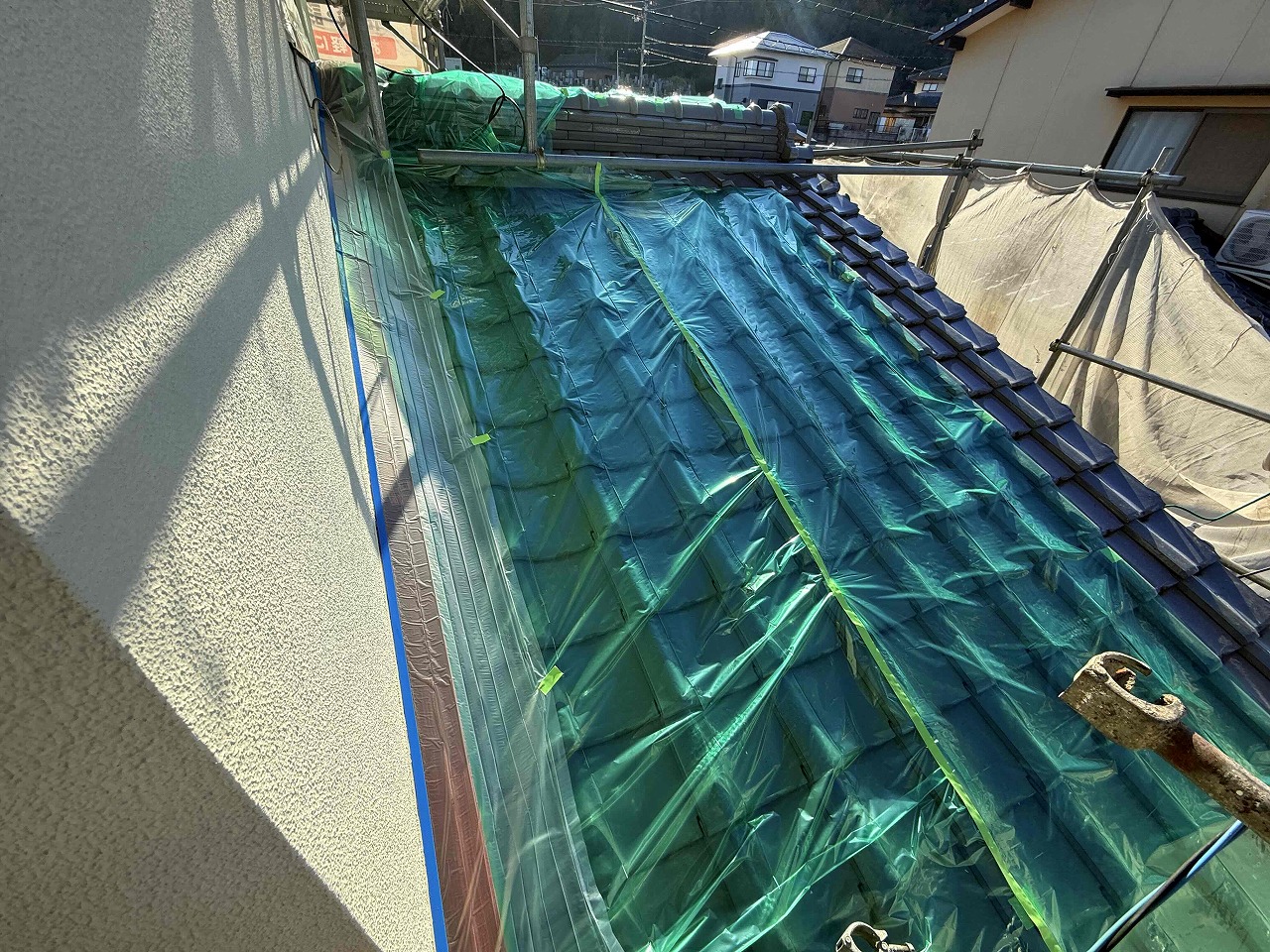 香川県高松市三谷町にて外壁塗装工事の養生作業を行いました!