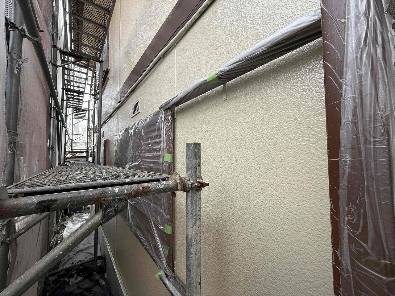 先日、下塗り(1回目塗装)が完了しており、本日は中塗り(2回目塗装)を行いました。明日も引き続き中塗り(2回目塗装)を行っていく予定となっております。引き続きよろしくお願いいたします!