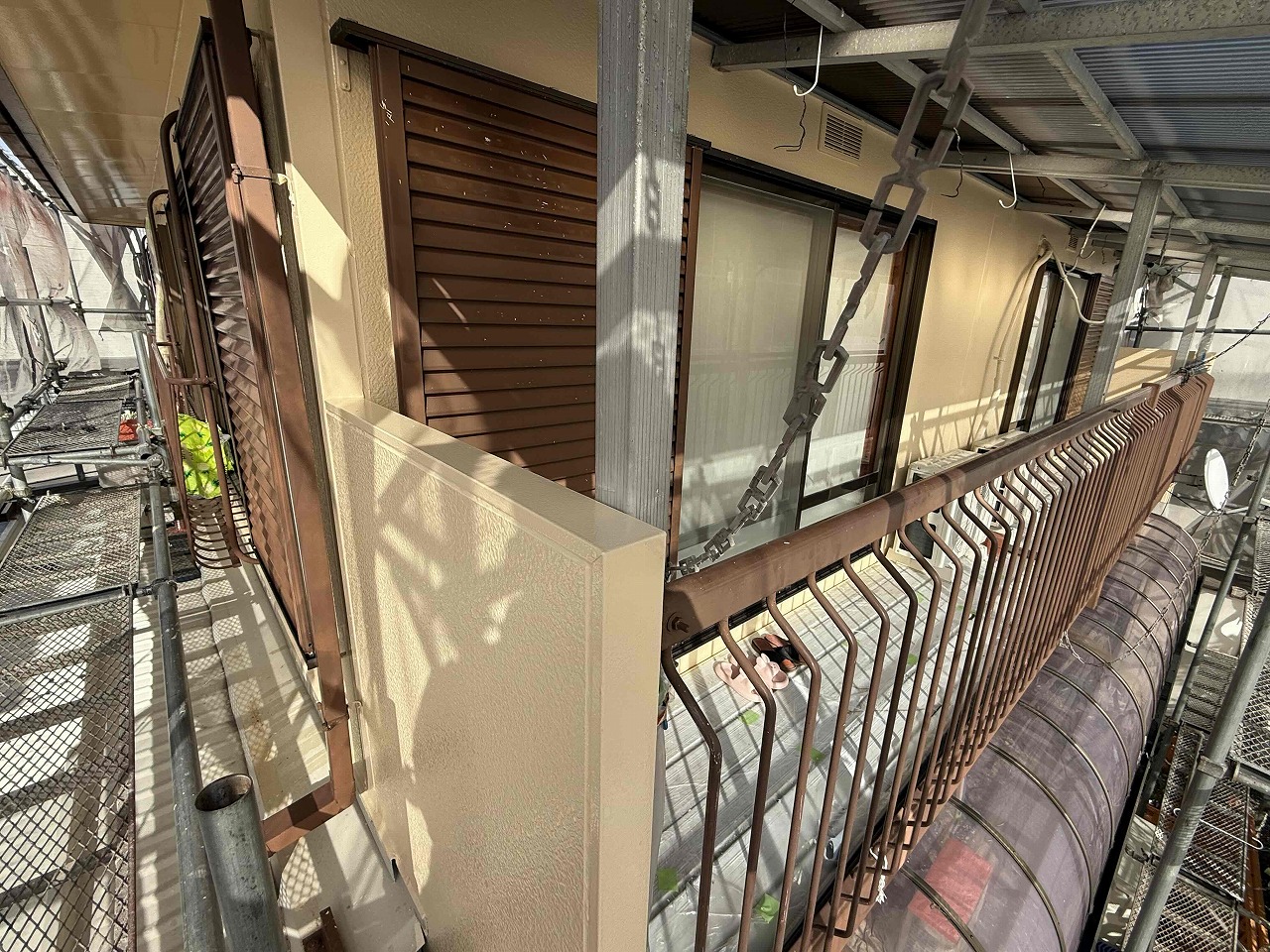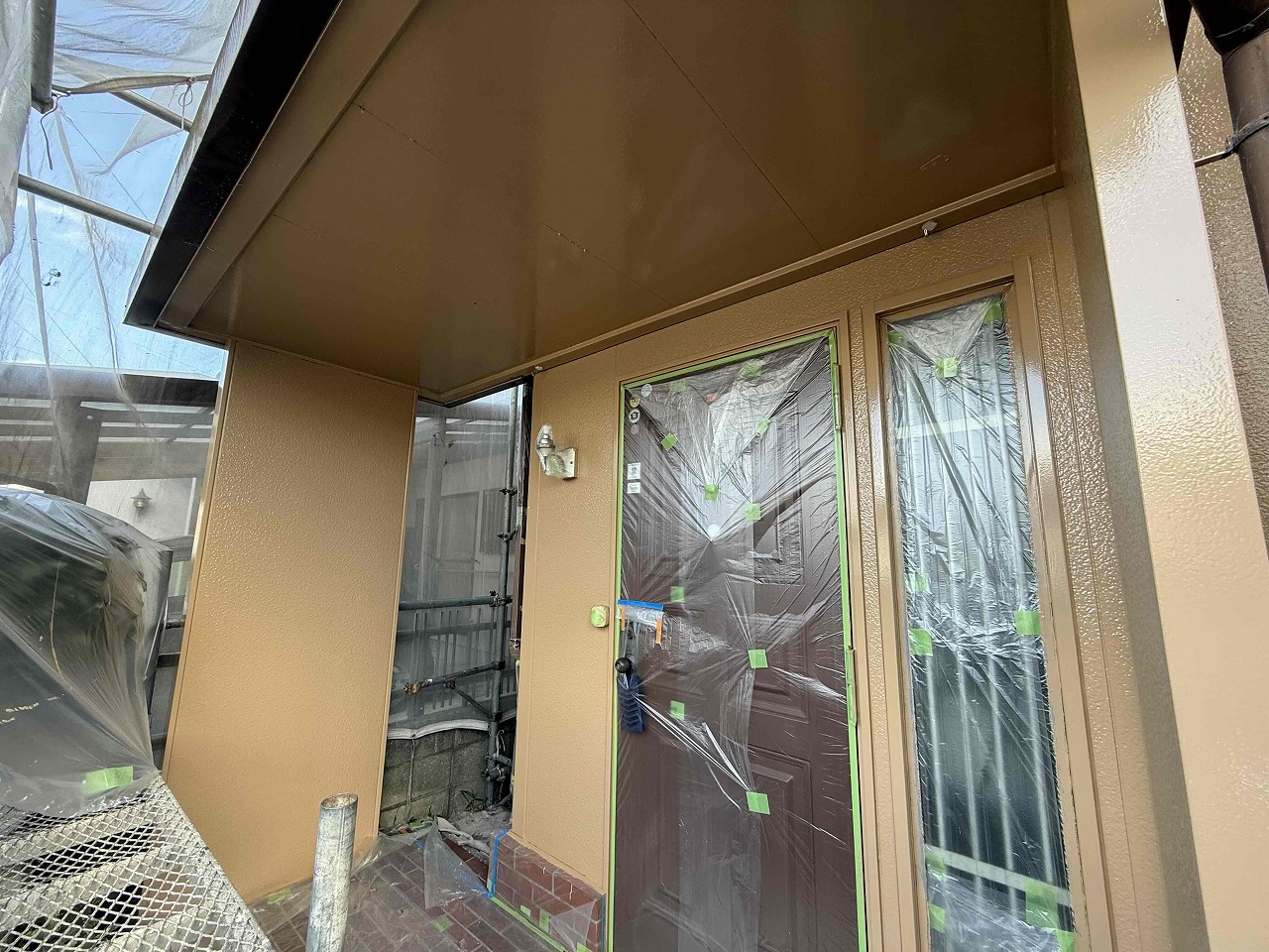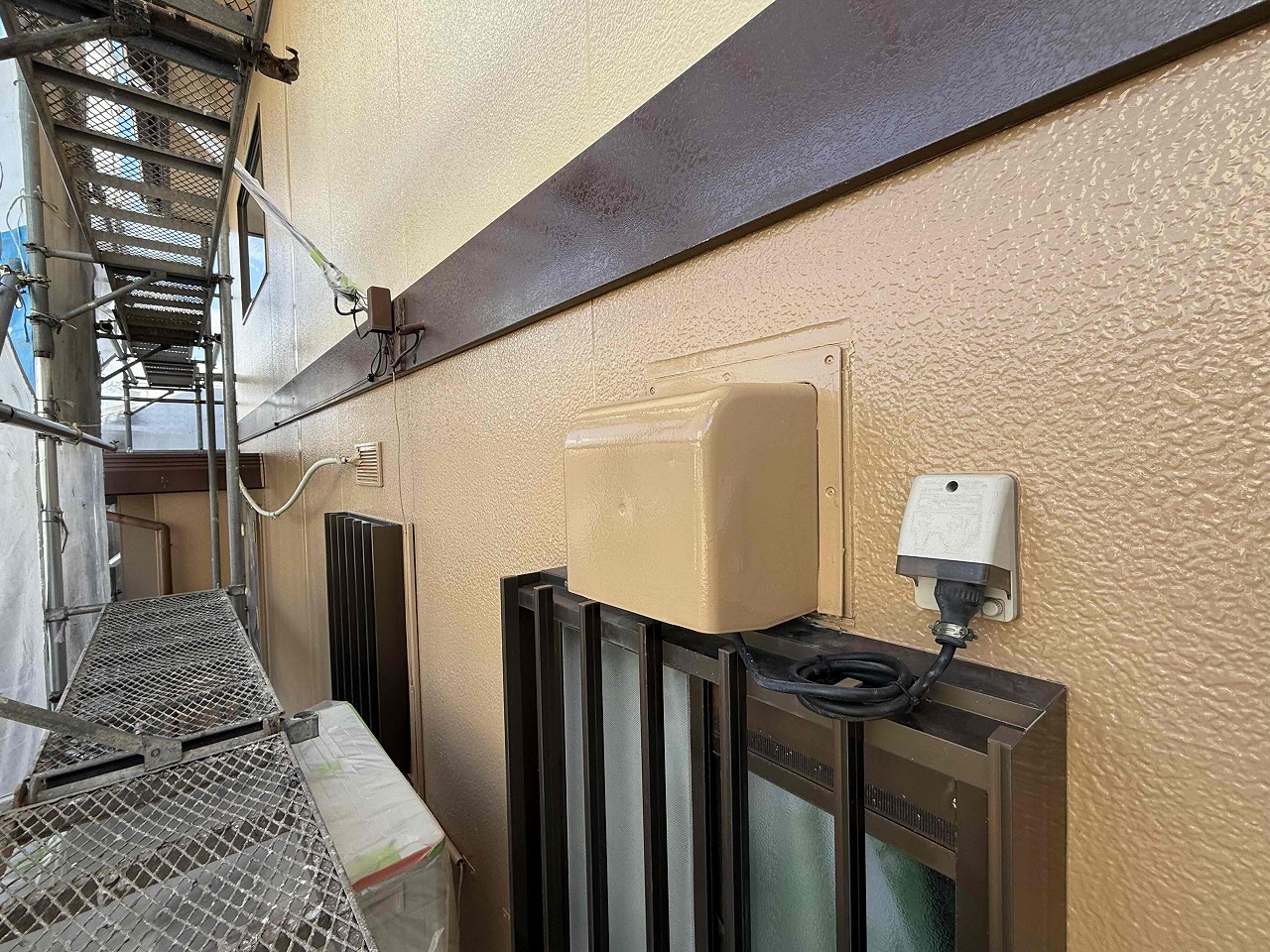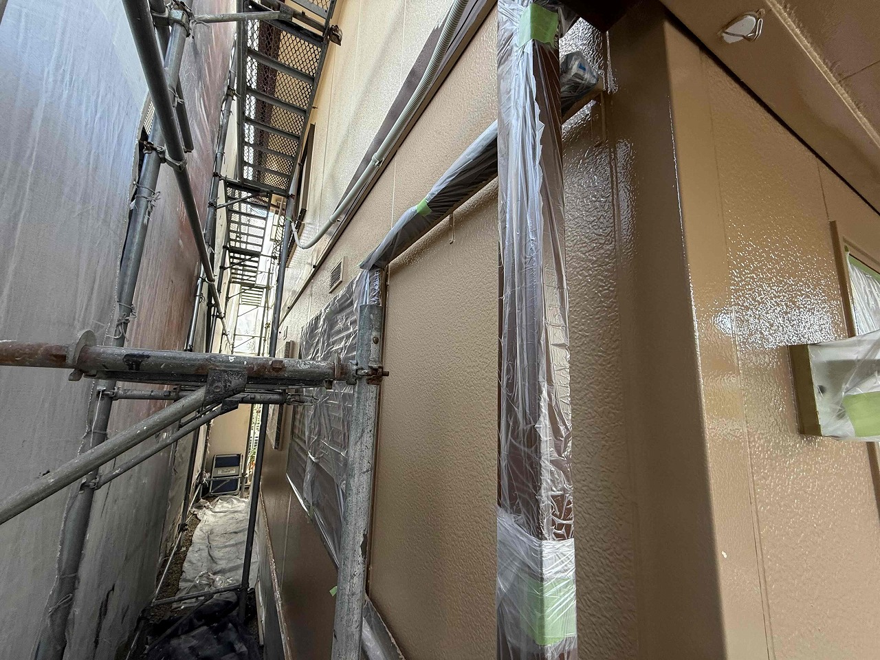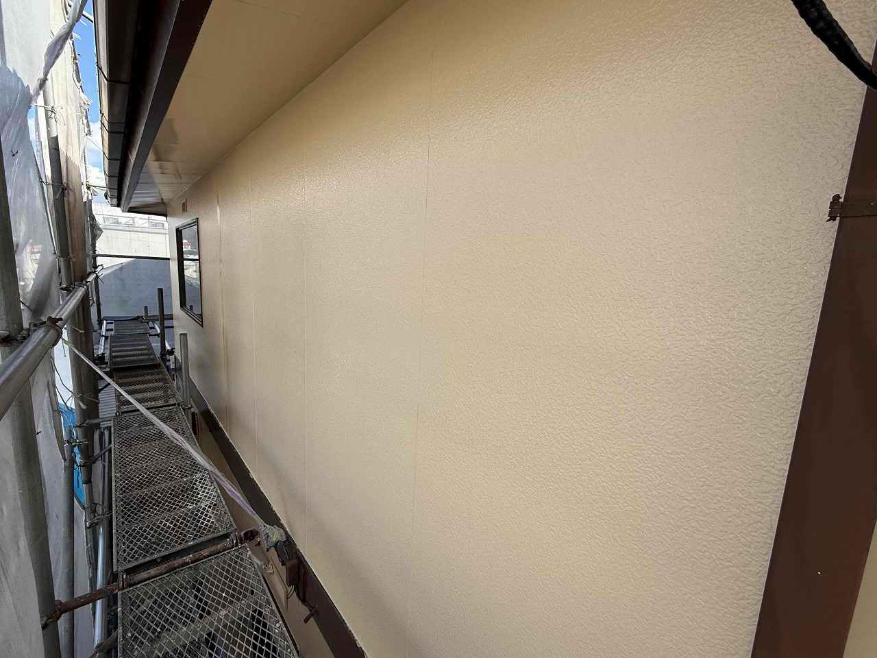 先日、中塗り(2回目塗装)が完了しており、本日は上塗り(3回目塗装)を行いました。明日は雨樋などの付帯パーツ類の塗装を行っていく予定となっております。引き続きよろしくお願いいたします!?