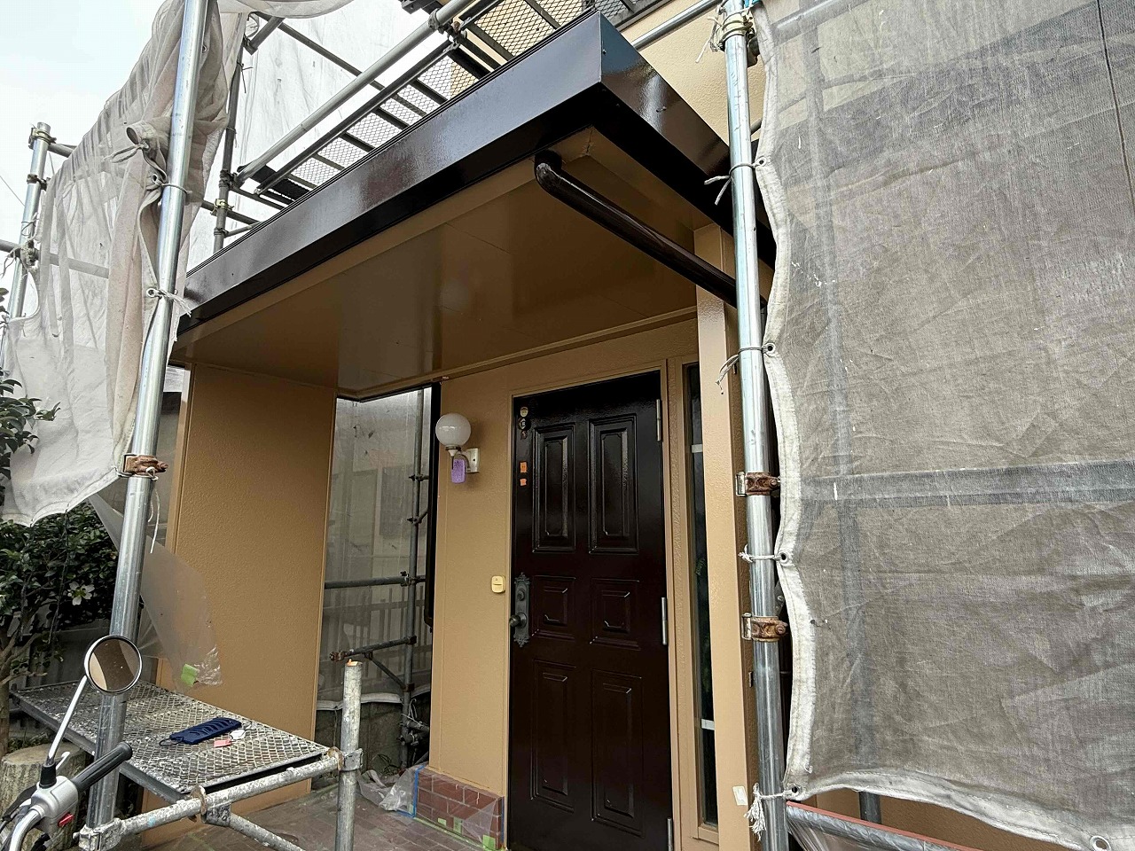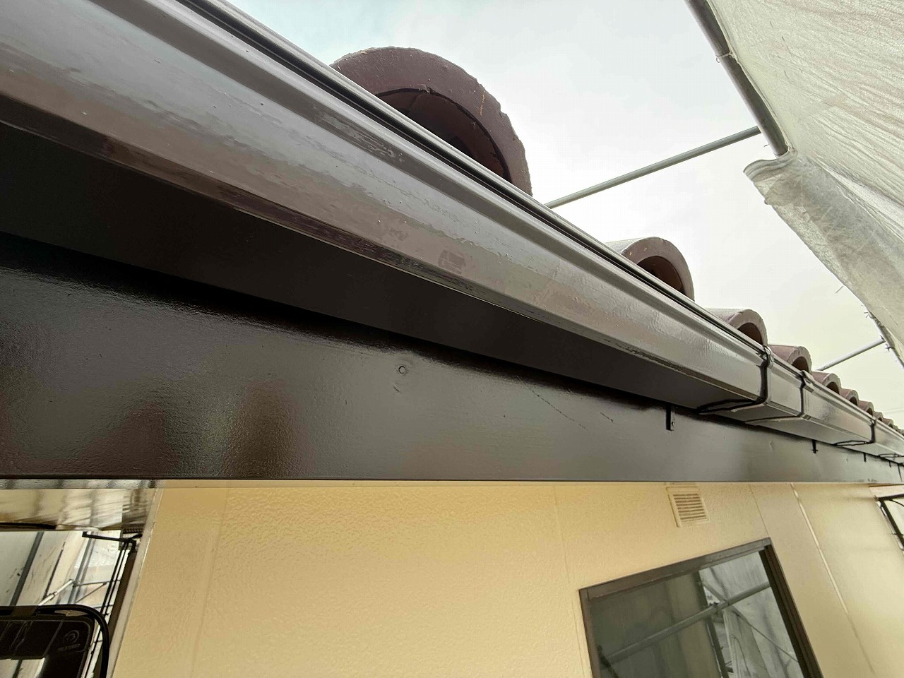 先日、外壁塗装(3回塗り)が完了しており、本日は付帯パーツ類の塗装を行いました。明日も引き続きよろしくお願いいたします!?