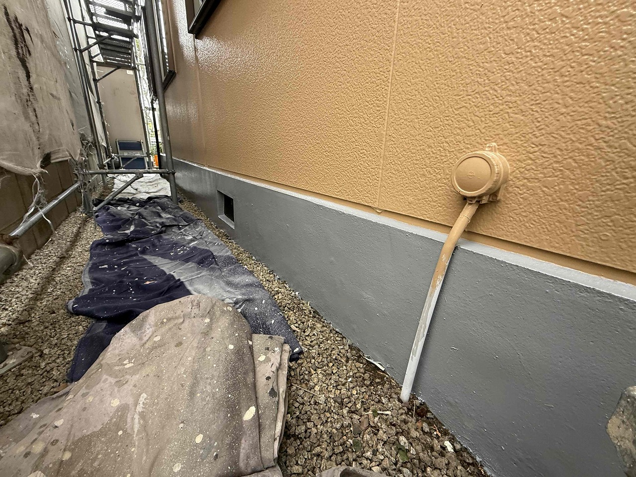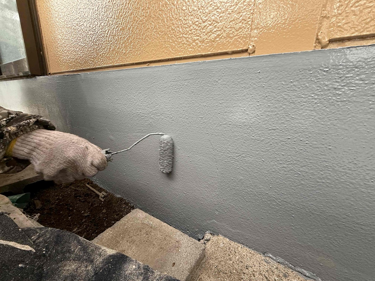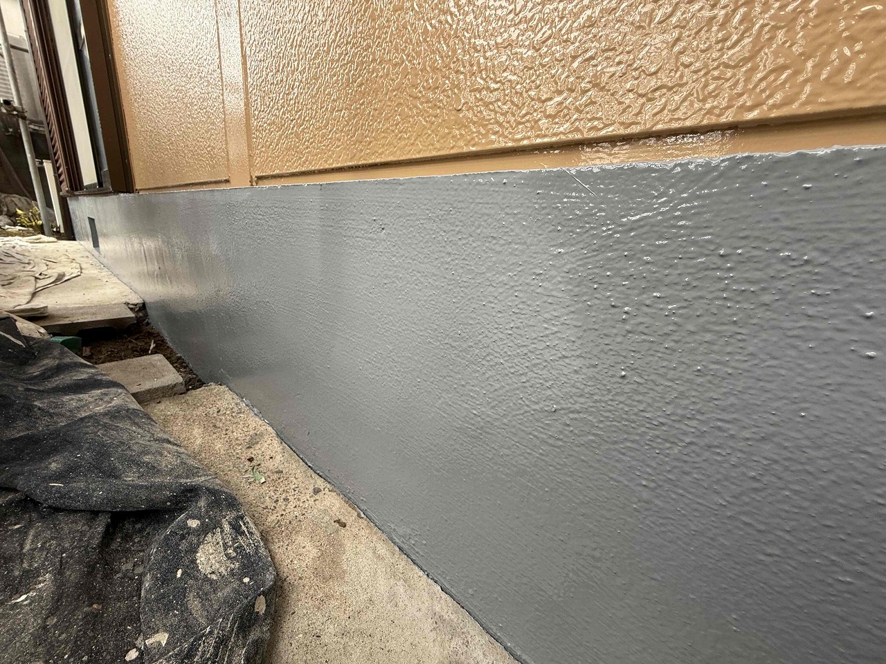 先日、外壁塗装工事が完了しており、本日は基礎の塗装工事(3回目塗装)を行いました。明日は、日曜日で職人が休みのため、月曜日より戸袋・雨戸などの付帯パーツ類の塗装を行っていく予定となっております。引き続きよろしくお願いいたします!?
