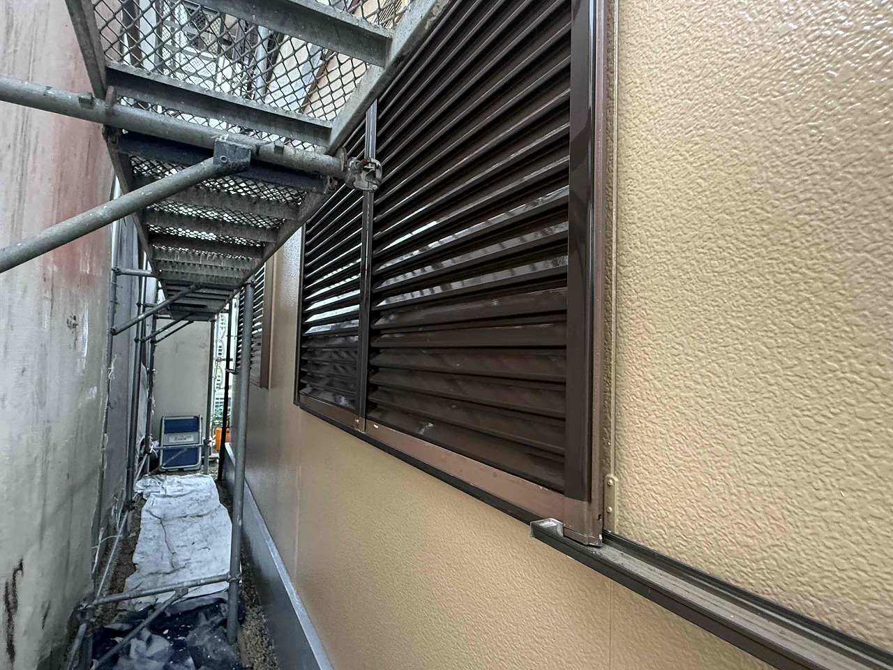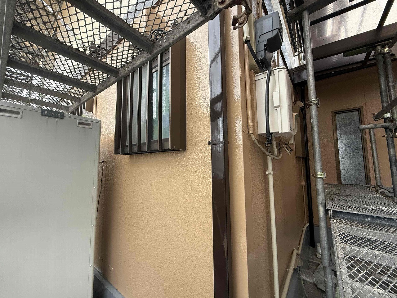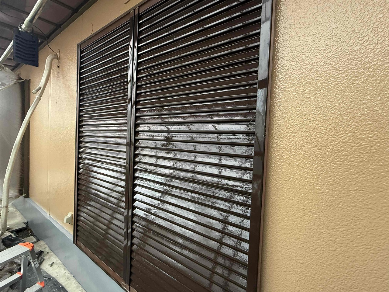 先日、外壁塗装工事(3回目塗装)が完了しており、本日は戸袋・雨戸・雨樋などの付帯パーツ類の塗装を行いました。明日も引き続きよろしくお願いいたします!?