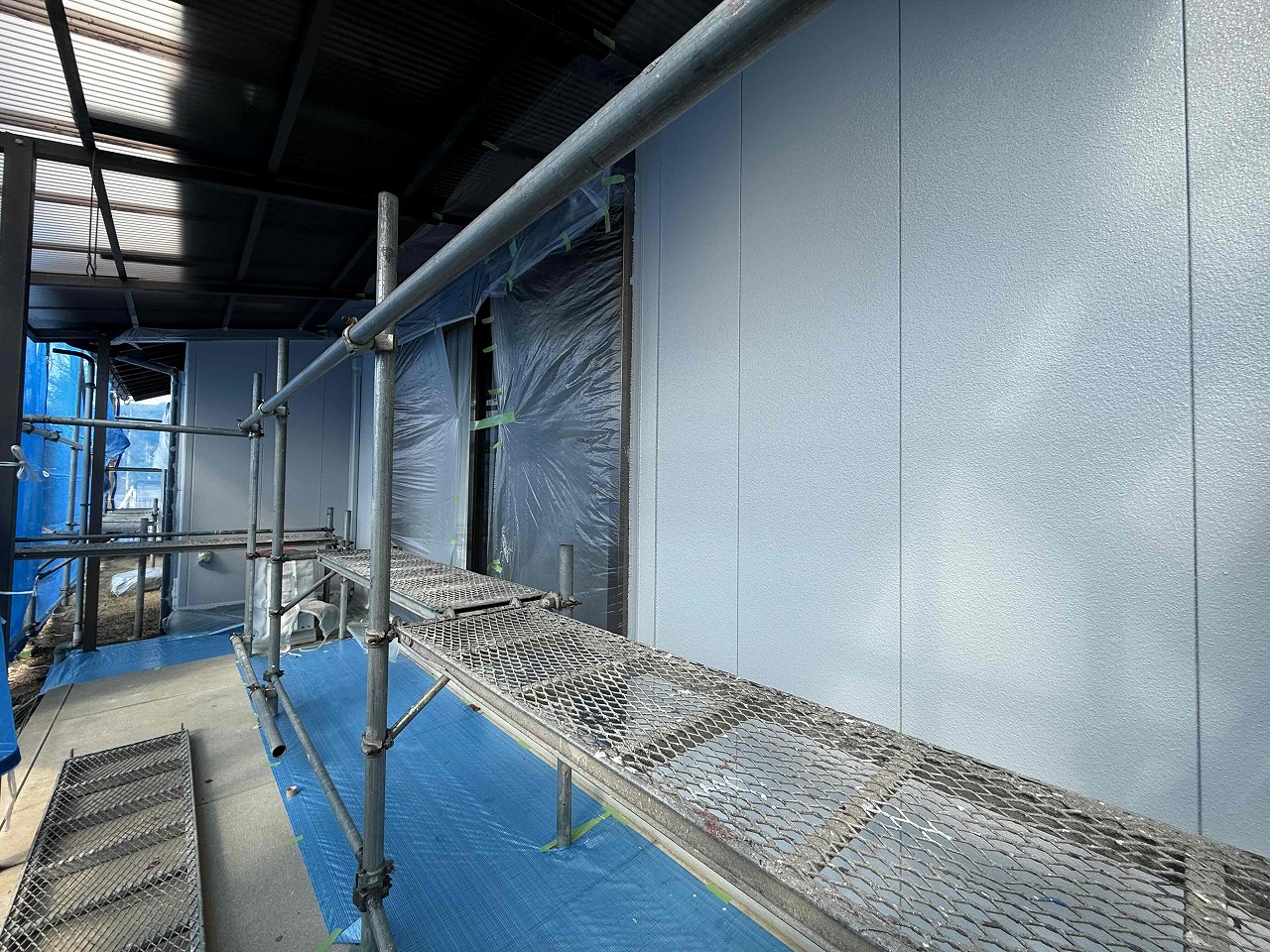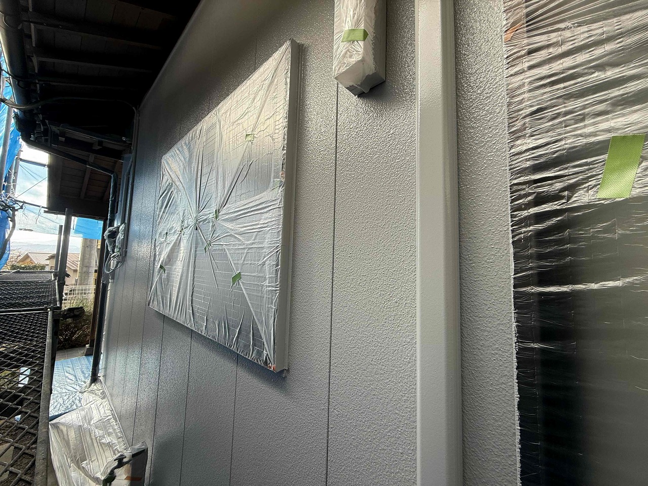 先日、中塗り(2回目塗装)が完了しており、本日は上塗り(3回目塗装)を行いました。明日は雨樋などの付帯パーツ類の塗装を行っていく予定となっております。引き続きよろしくお願いいたします!?